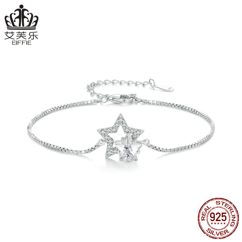 艾芙乐新品精致双层星星手链s925纯银镀白金五角星饰品时尚手饰女