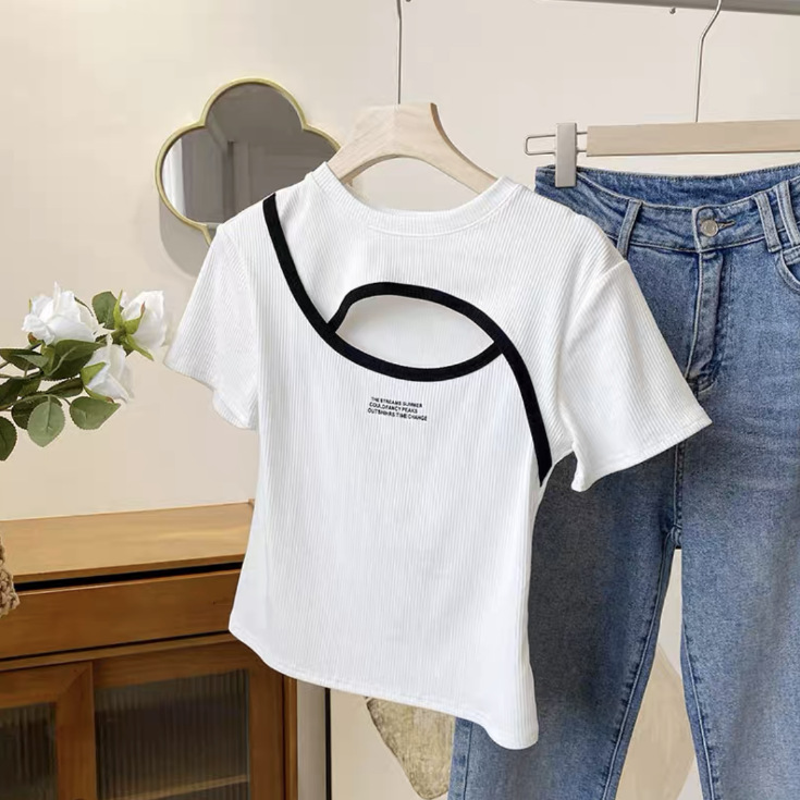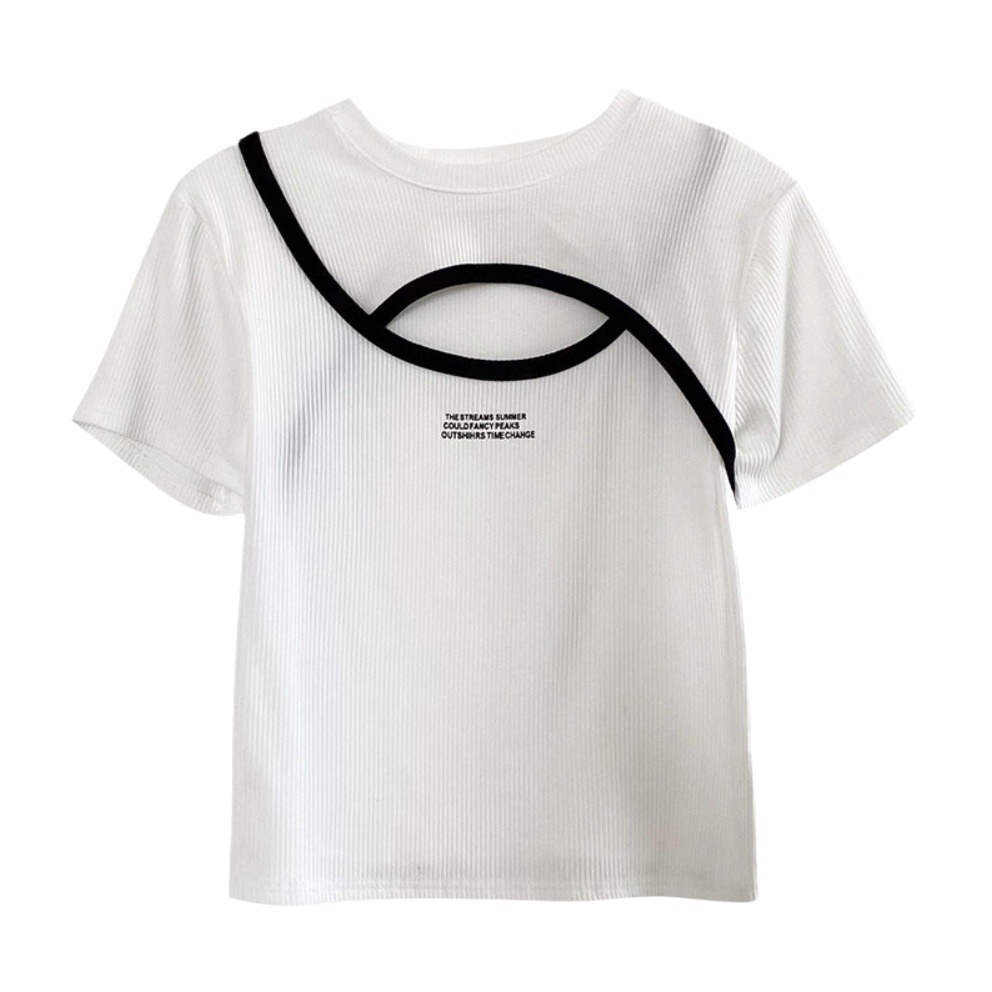 独特别致时尚chic甜辣妹修身短款镂空上衣设计感胖mm短袖t恤女夏