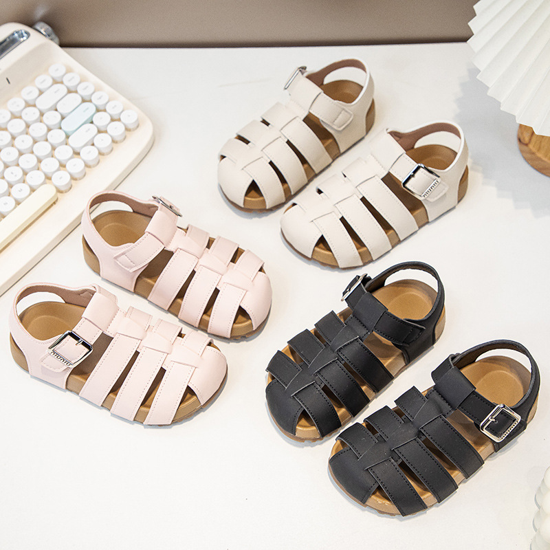 简约休闲纯色款小童编织镂空鸟巢鞋2025年夏季男女童百搭沙滩凉鞋