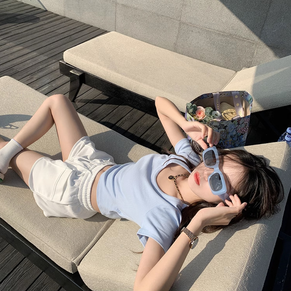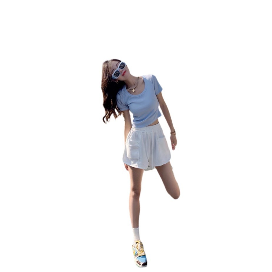 高档洋气正肩短袖t恤女夏季新款韩版百搭短款修身显瘦上衣潮流ins