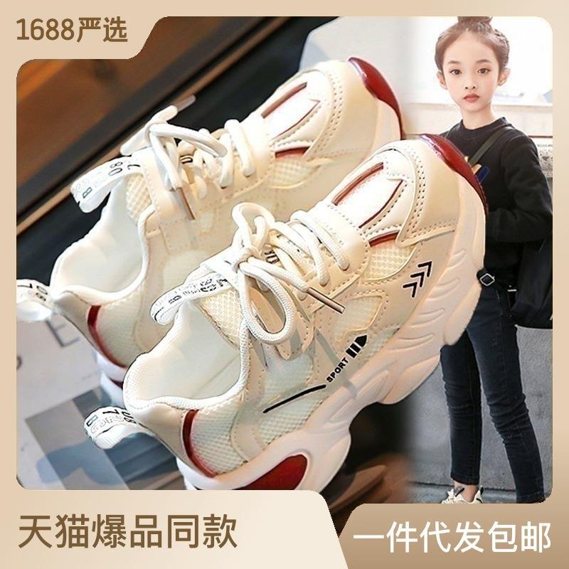 童鞋女童运动鞋春季新款儿童软底老爹鞋中大童女孩跑步小白鞋