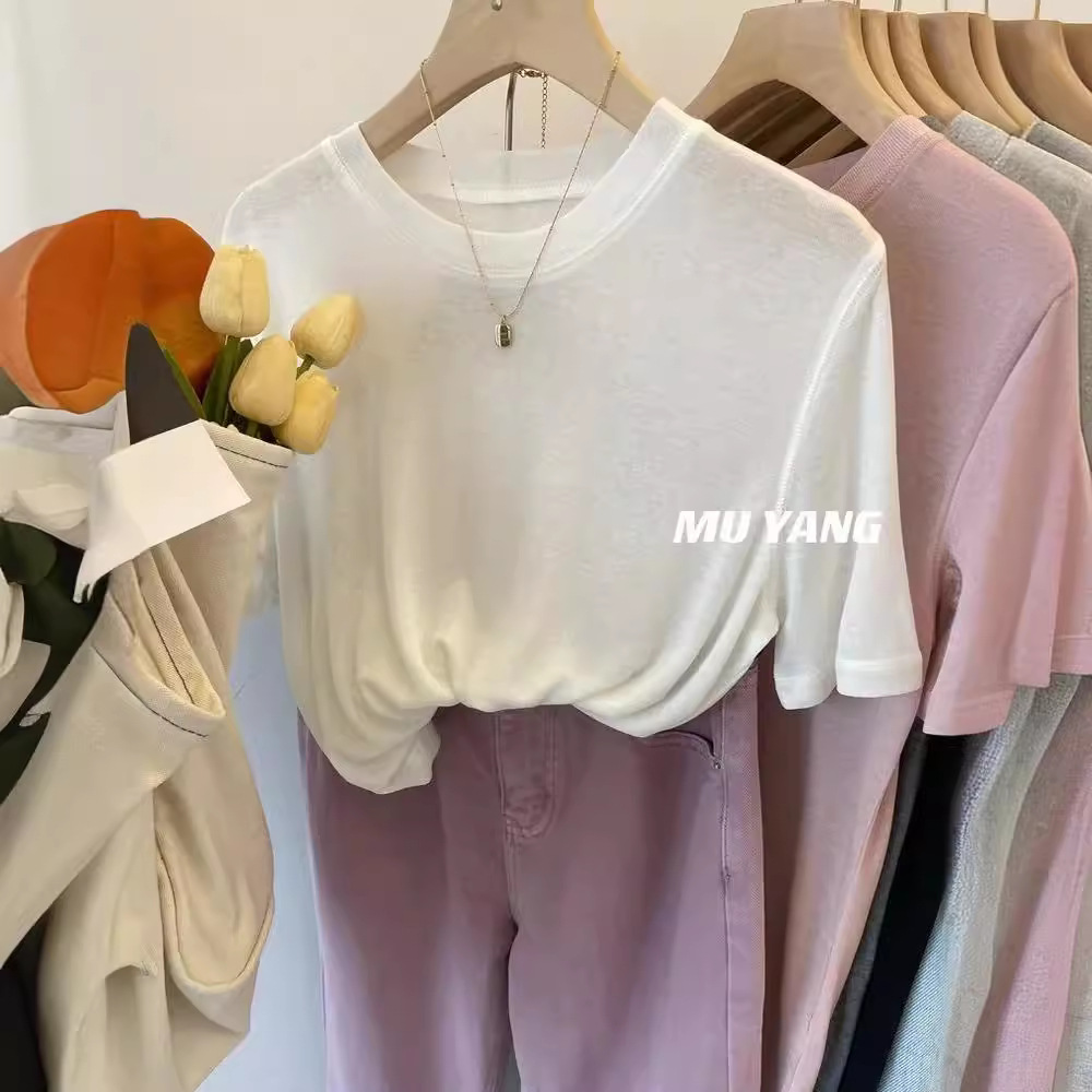 【质做高品】精梳纯棉T恤女休闲宽松2025夏新款百搭短袖上衣桖衫