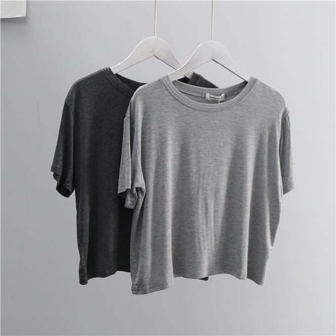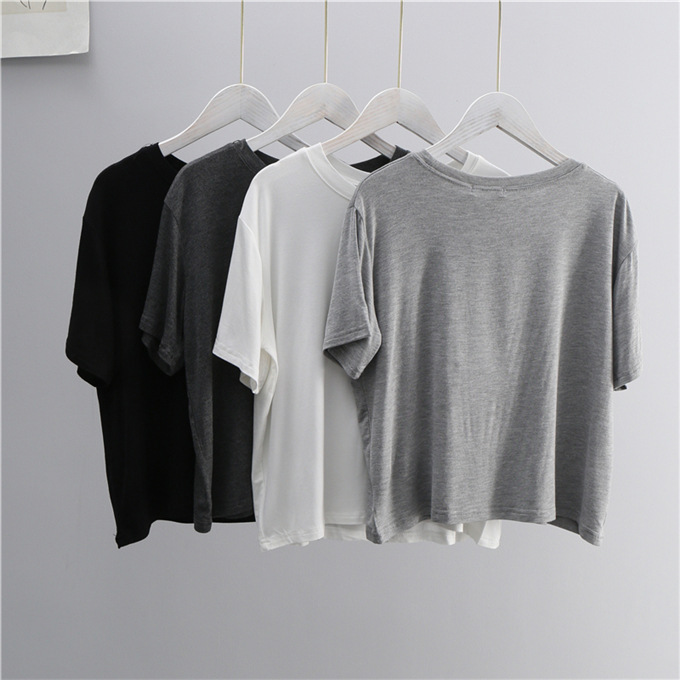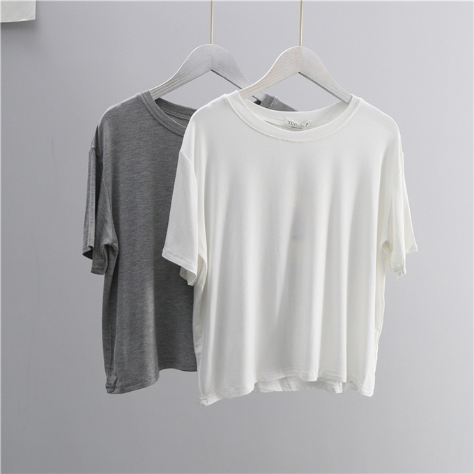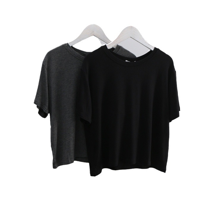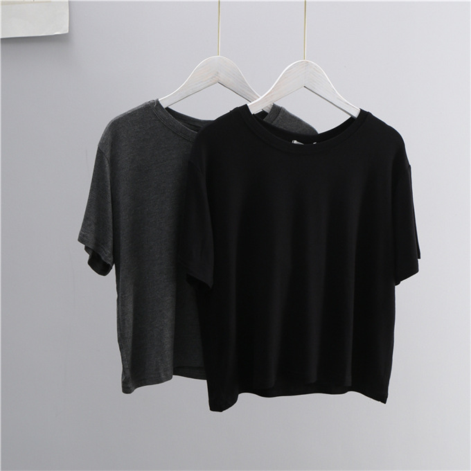 超手感莫代尔纯色圆领短袖T恤女夏季短款半袖显瘦上衣学生休闲T恤
