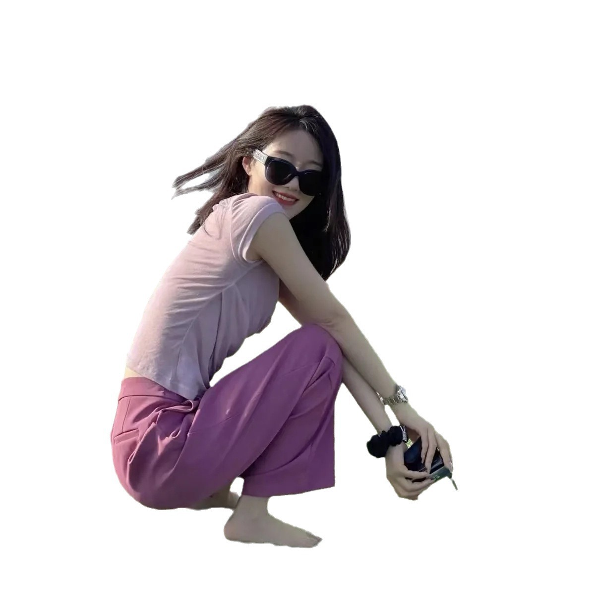 短袖t恤女美式 夏季新款粉色半袖体恤小众设计感圆领上衣潮牌