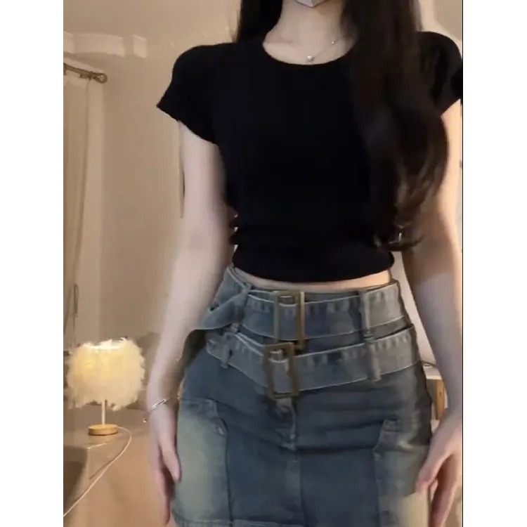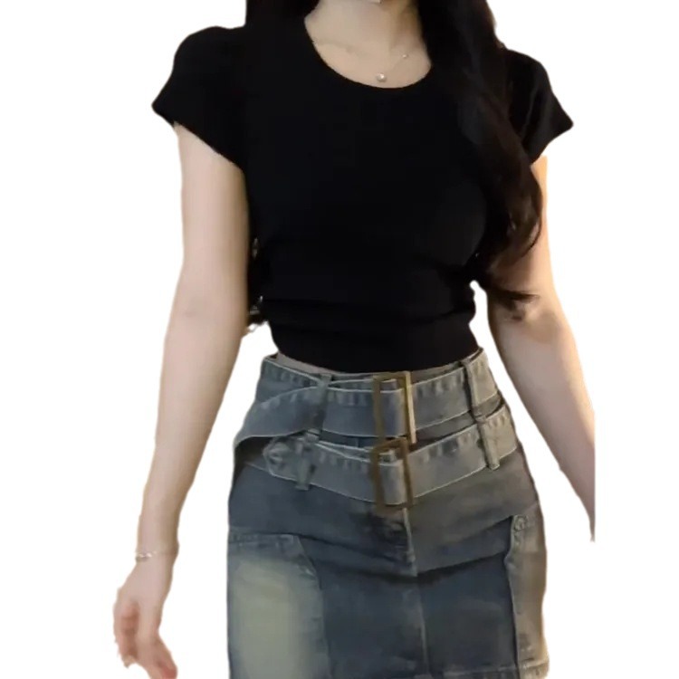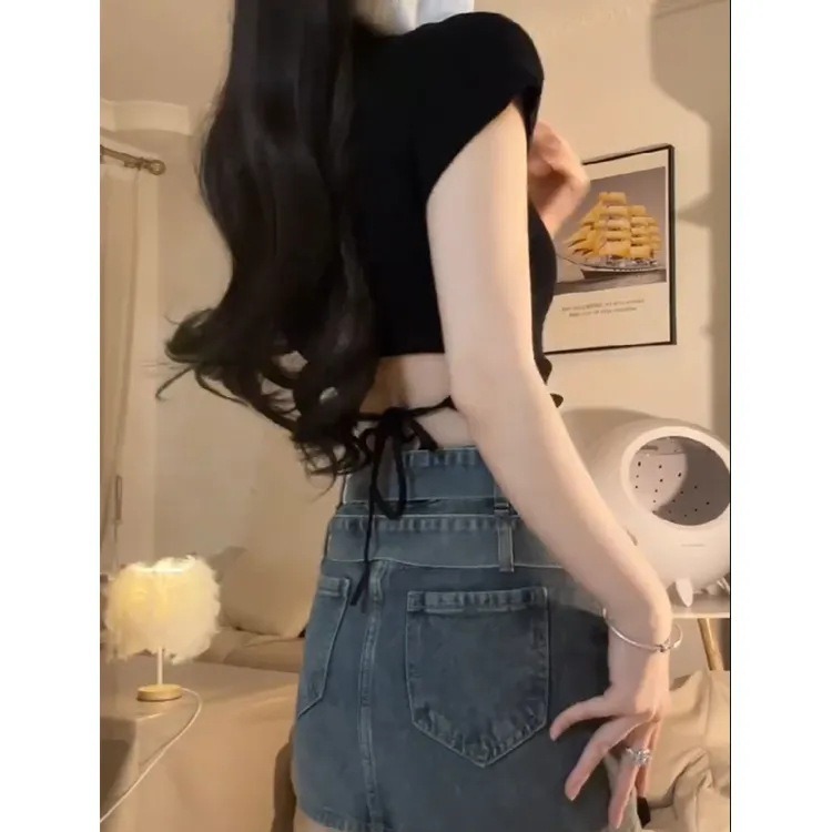 太绝啦!!!【绑带露背】纯欲风正肩短袖T恤女INS辣妹显瘦短款上衣