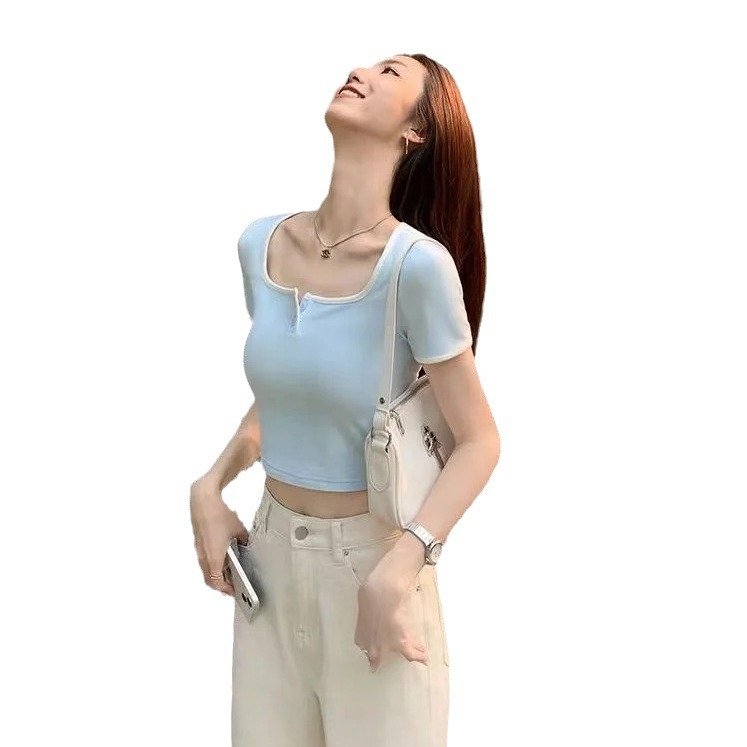 露锁骨U领正肩短袖T恤女新款夏季修身显瘦时尚百搭半袖体桖