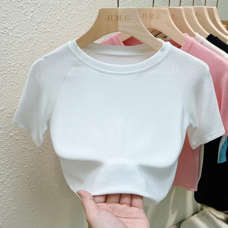 甜辣紧身短款短袖t恤女夏季韩版新款小个子薄款体恤内搭上衣服潮