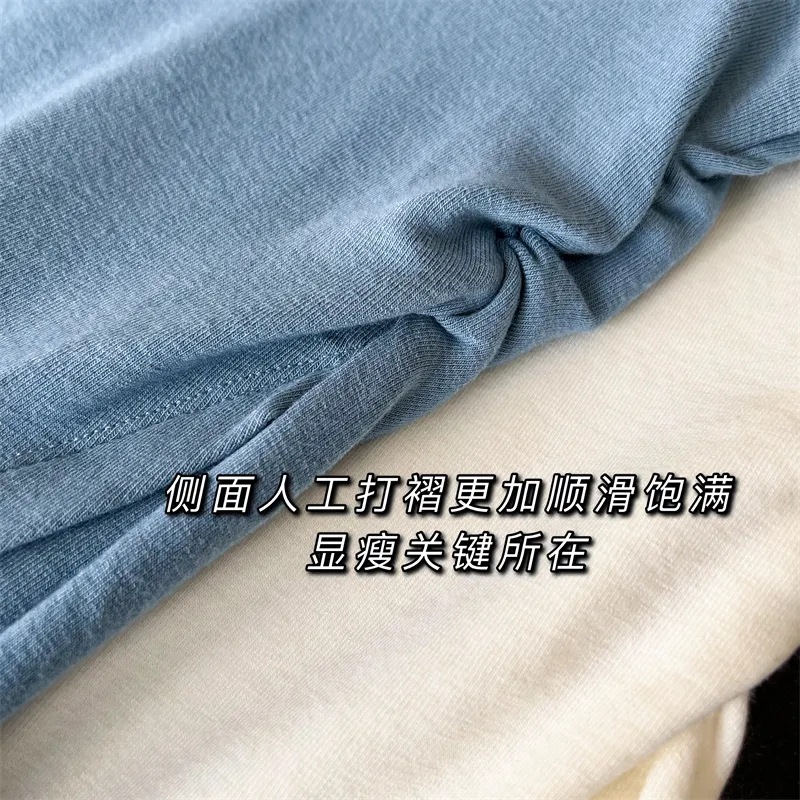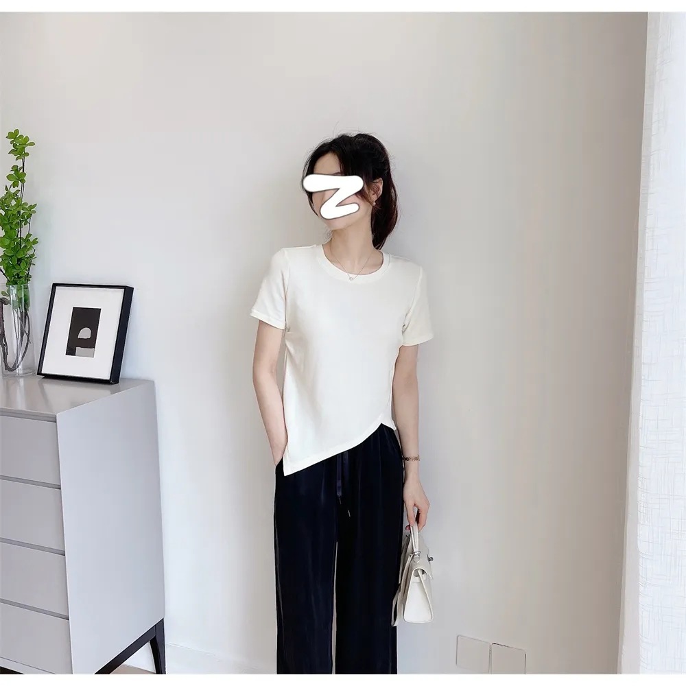 高端女装褶皱上衣小心机下摆侧开叉不规则别致设计感短袖T恤女夏
