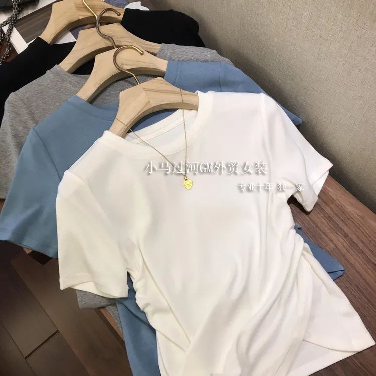 圆领短袖t恤女夏季设计感小众小个子体恤修身短款上衣夏