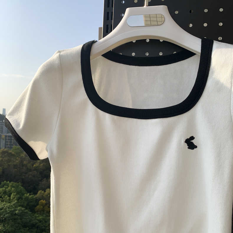 本期王炸~ 小圆领兔子刺绣短袖T恤女夏季新款修身百搭打底衫上衣