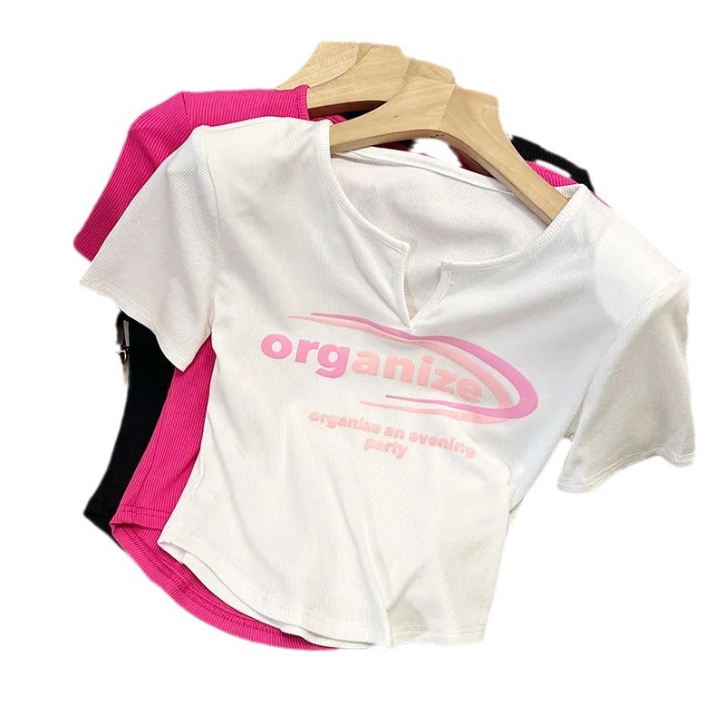 v领设计感小众短袖T恤女夏季新款辣妹体恤修身显瘦短款上衣潮