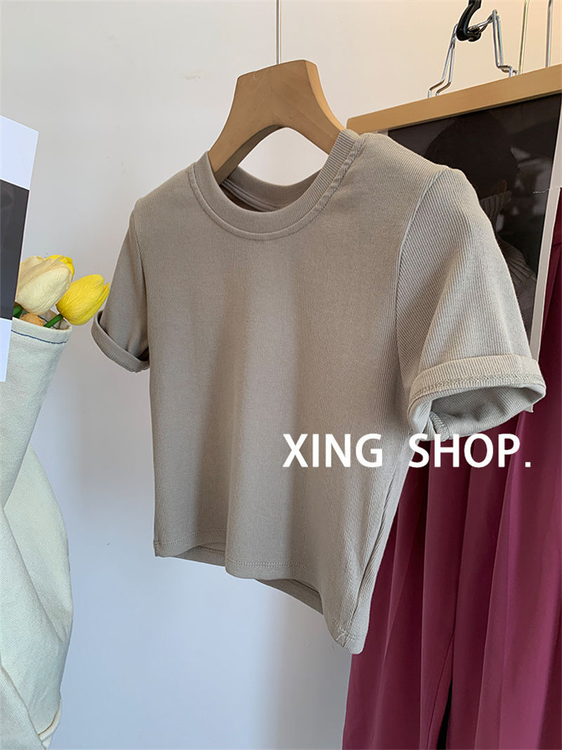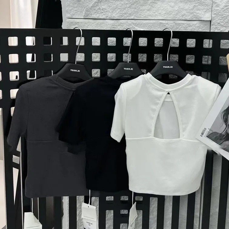 纯欲风设计感正肩t恤女短袖夏修身露背别致小众韩版辣妹上衣ins潮