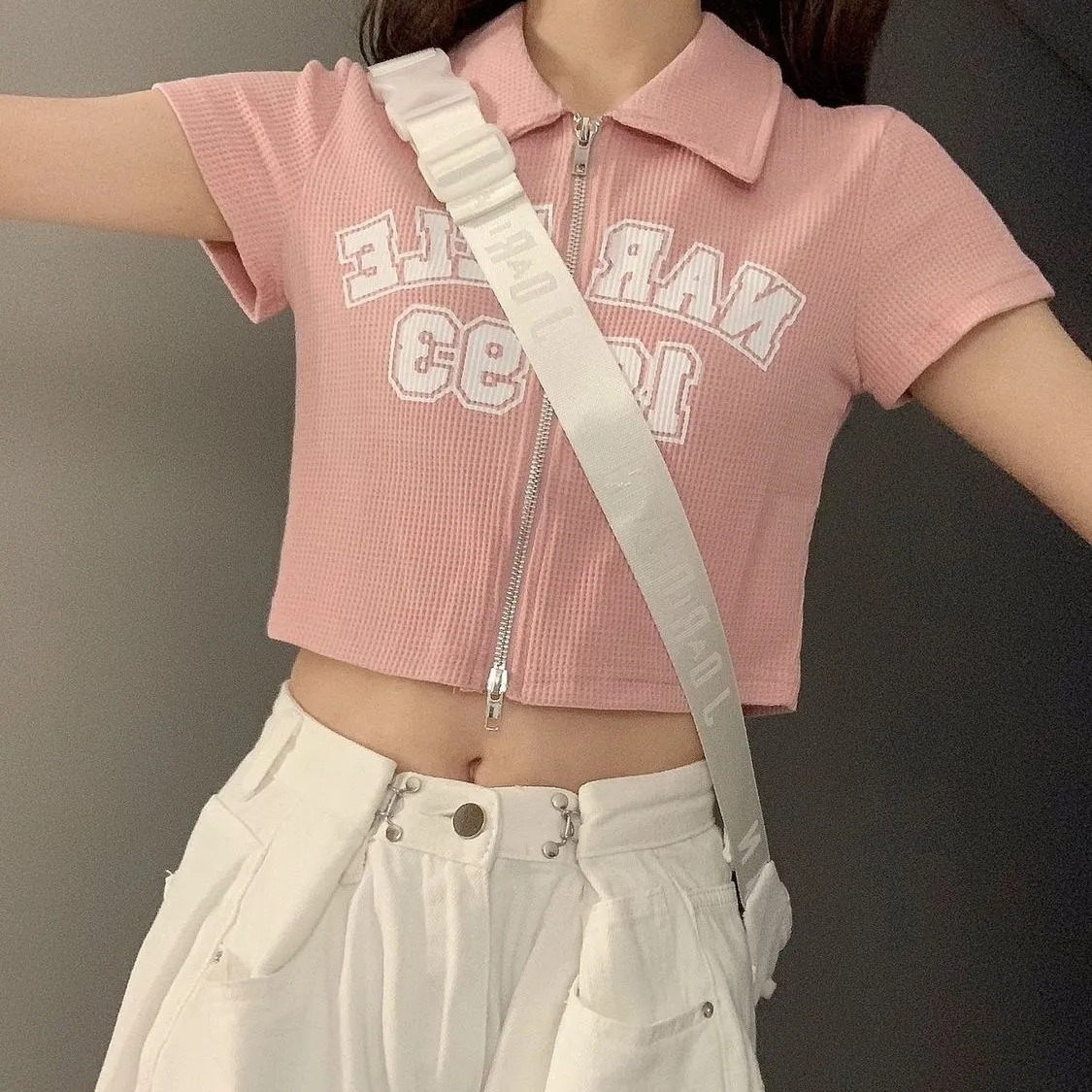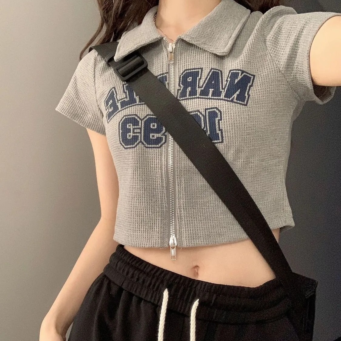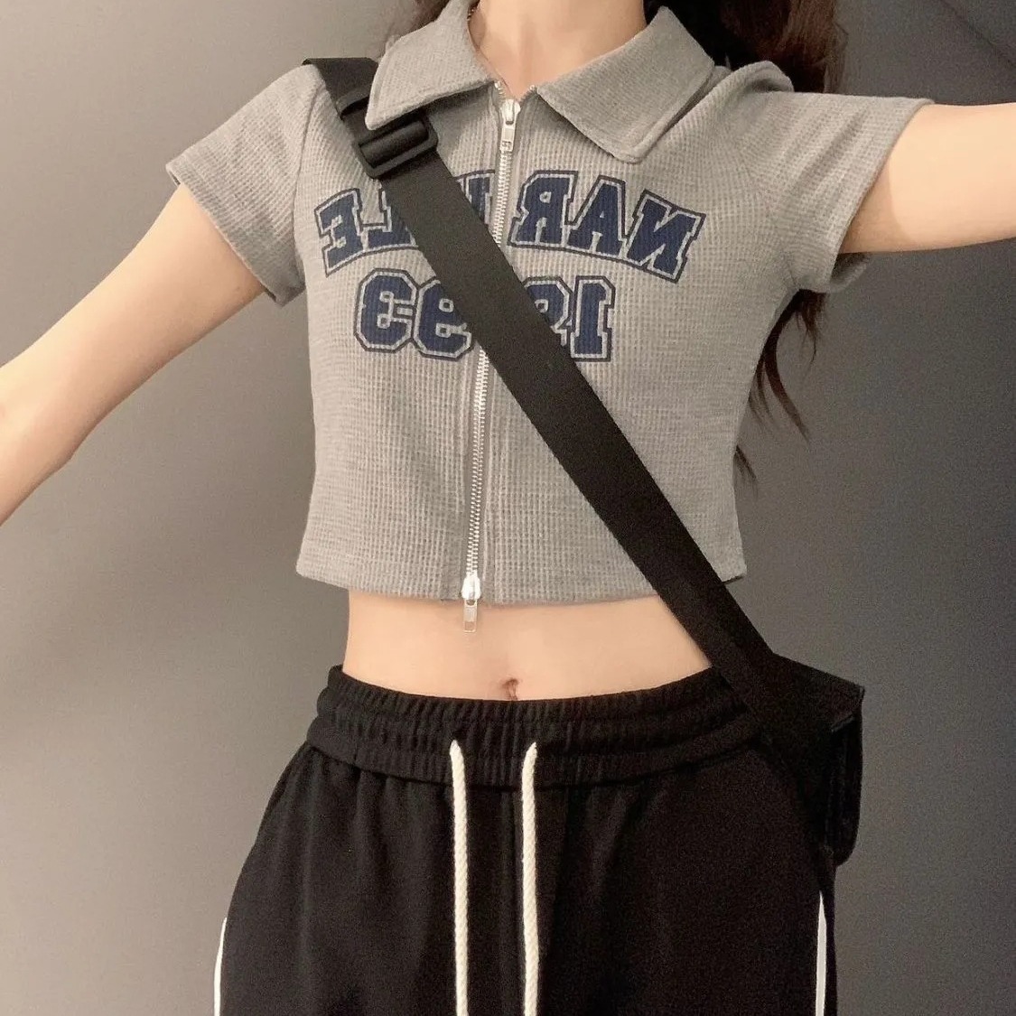 辣妹polo领拉链正肩短袖t恤女夏季新款设计感小众短款上衣潮