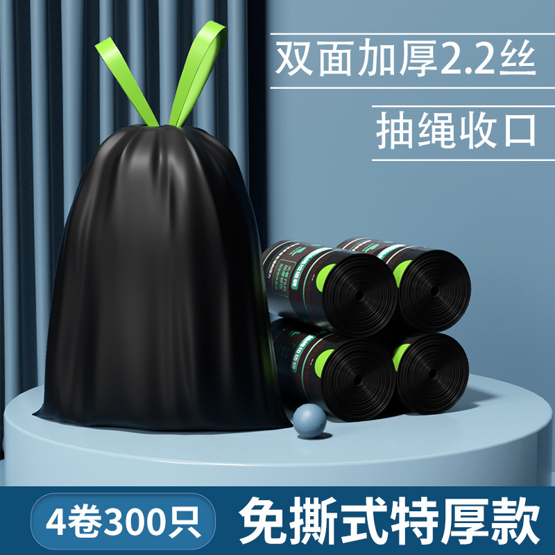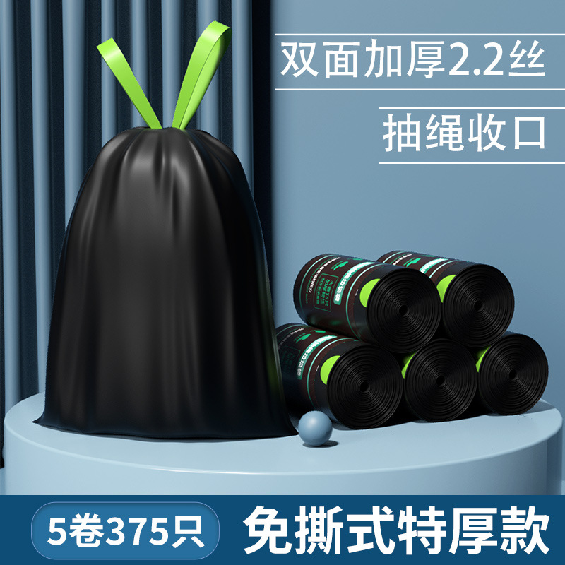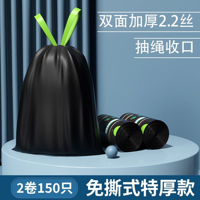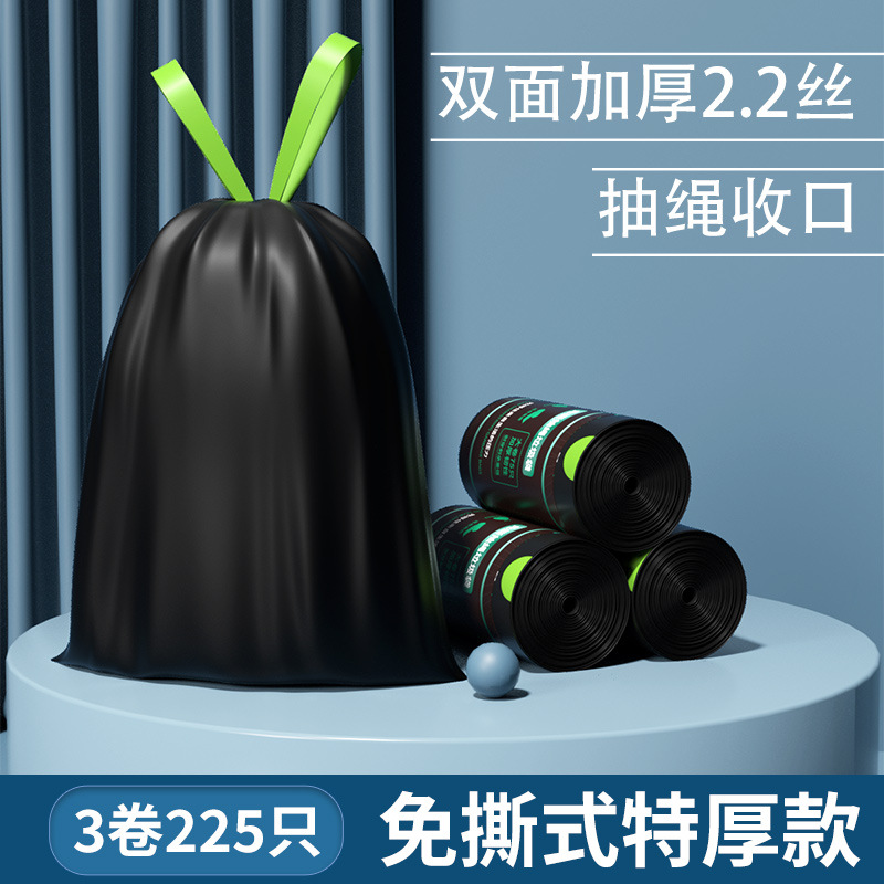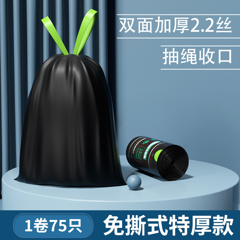 抽绳垃圾袋 黑色手提式中大号厨房家用加厚免撕一次性塑料袋