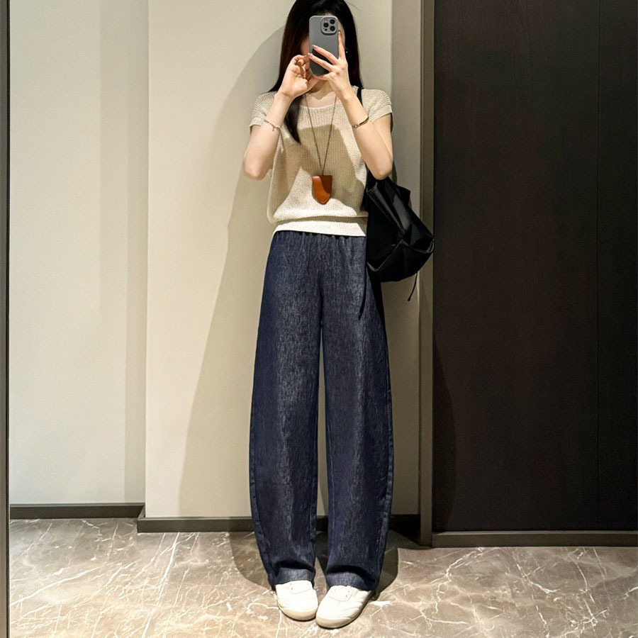 老钱风天丝亚麻棉麻女装麻料裤子宽松休闲垂感直筒阔腿裤香蕉裤女
