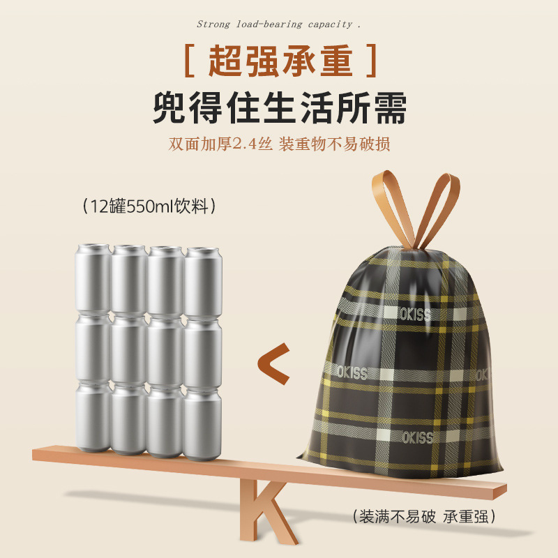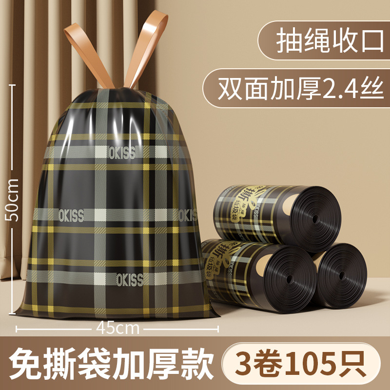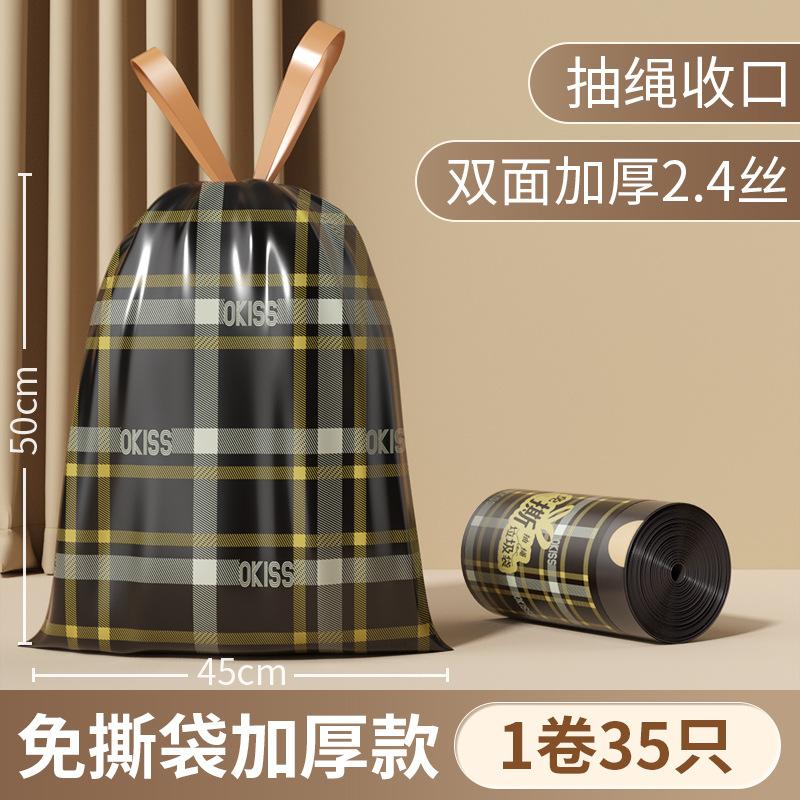抽绳垃圾袋加厚不易破收口垃圾袋手提式塑料袋家用厨房免撕垃圾袋