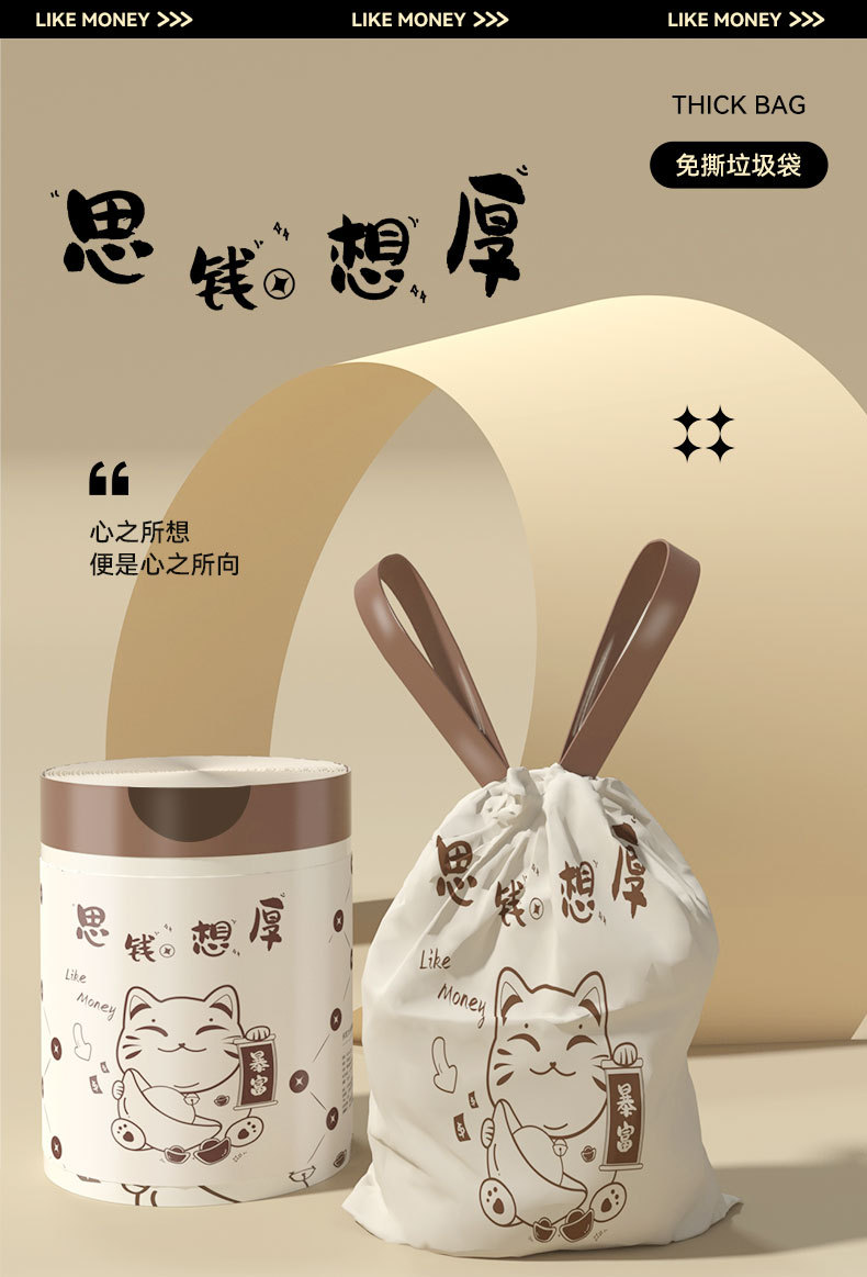 家用垃圾袋手提式抽绳加厚款厨房卫生间印花免撕垃圾袋清洁塑料袋