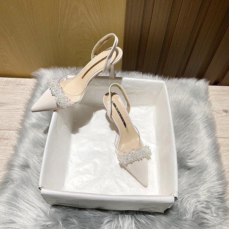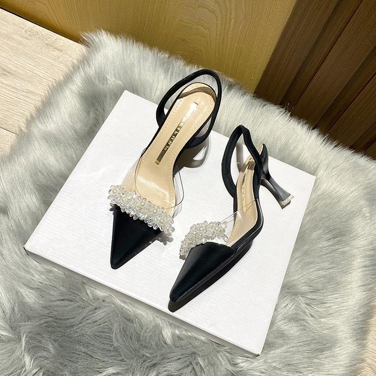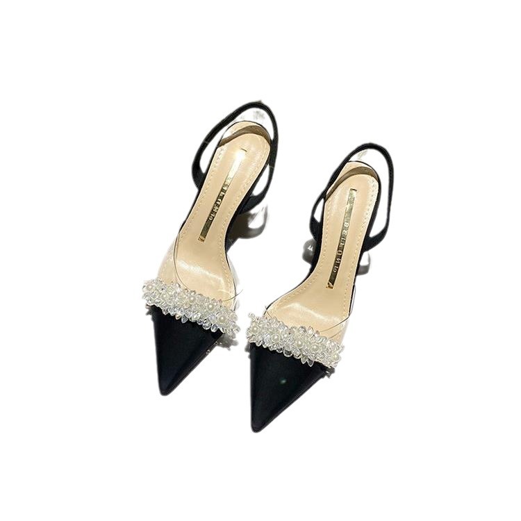 绝美高跟包头凉鞋女春夏季新款法式透明尖头细跟水钻高跟鞋