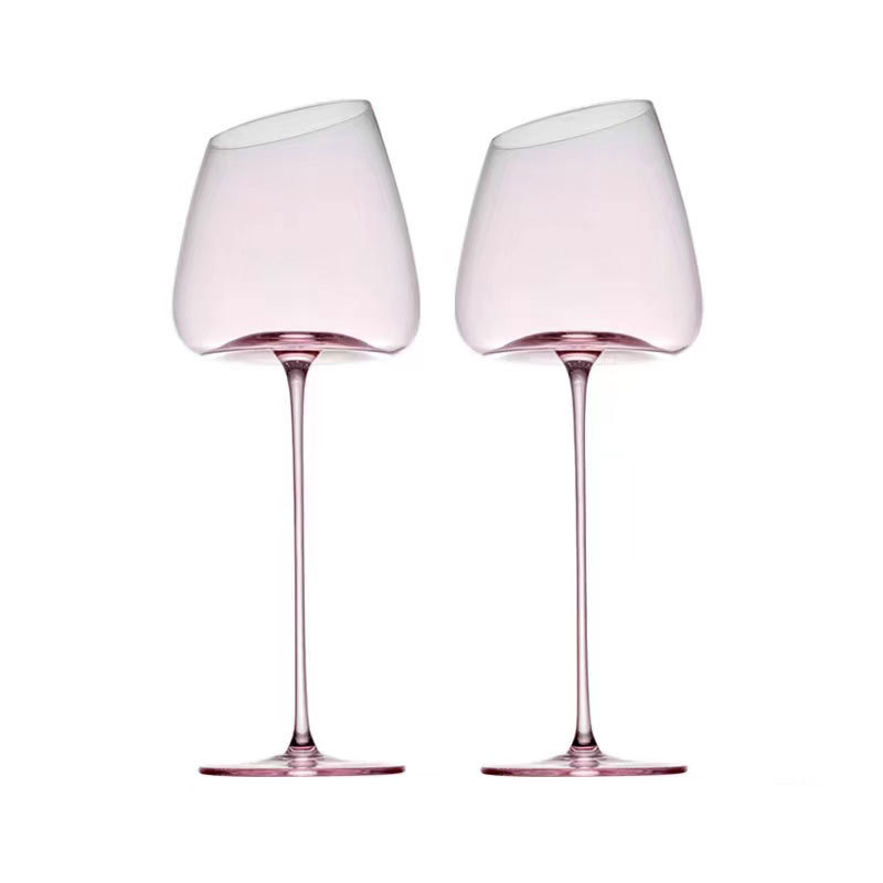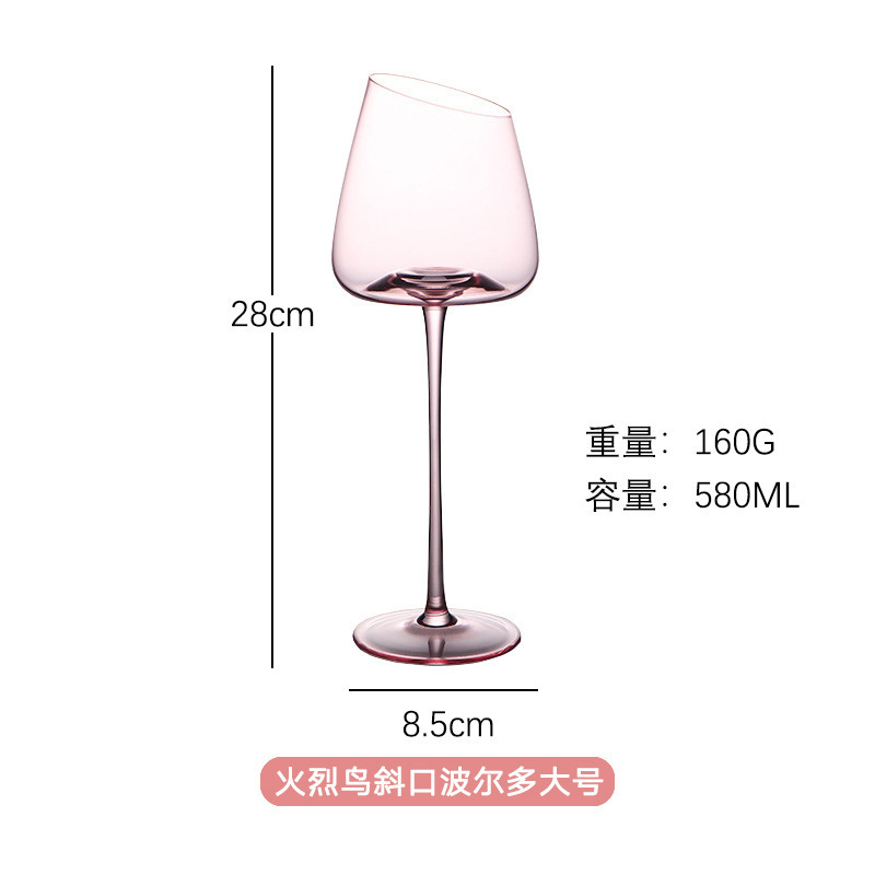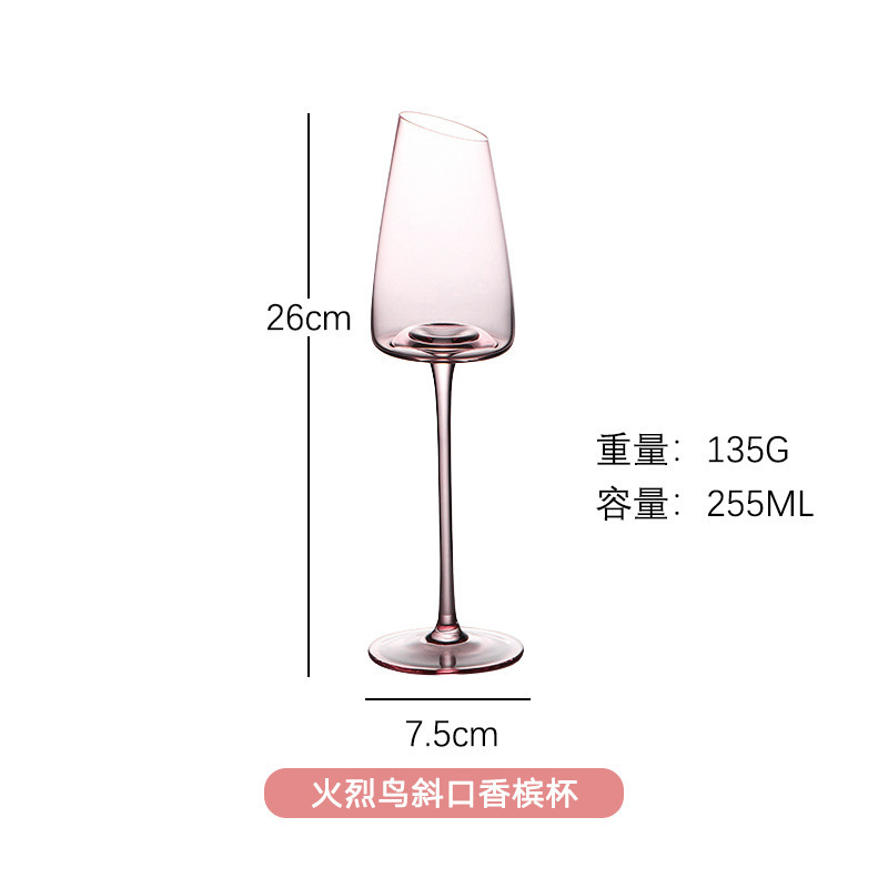 北欧ins粉色火烈鸟玻璃红酒杯斜口透明高脚杯轻奢高颜值葡萄酒杯
