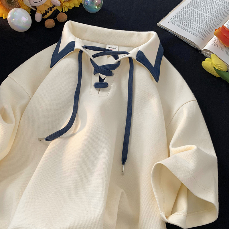 抽绳短袖t恤女新款夏季韩版设计感修身休闲短款学生上衣潮