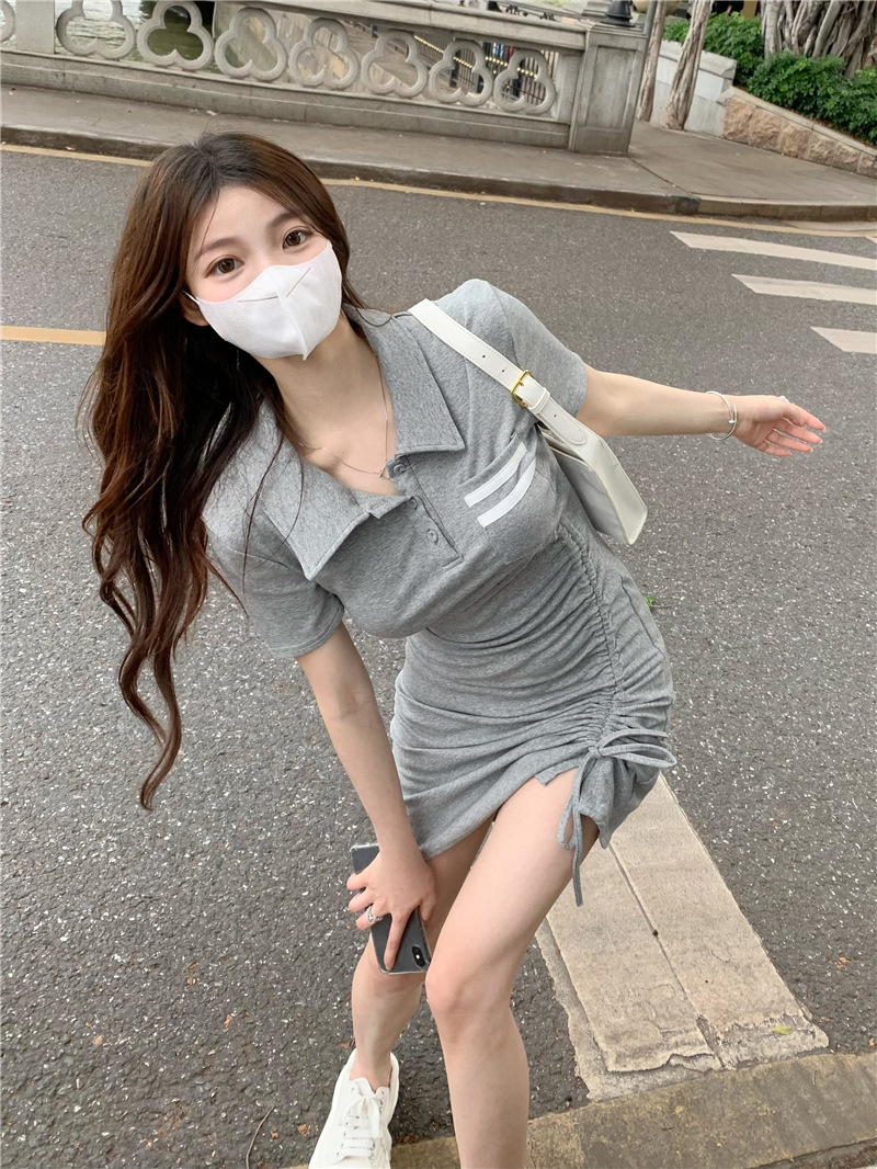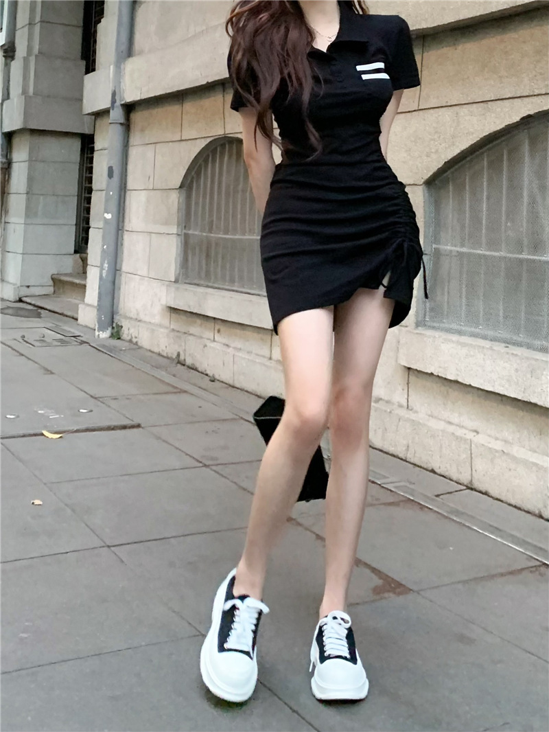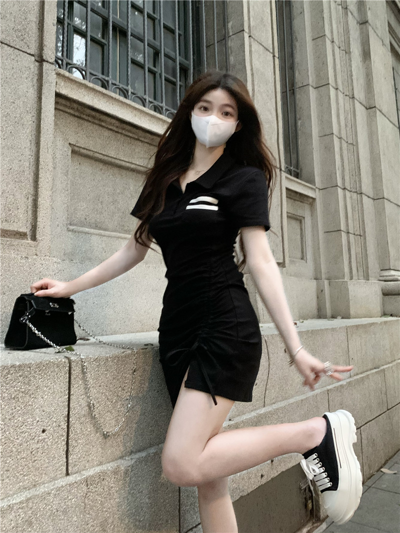 小个子冷淡风polo连衣裙女装夏季新款修身显瘦气质高级感抽绳裙子