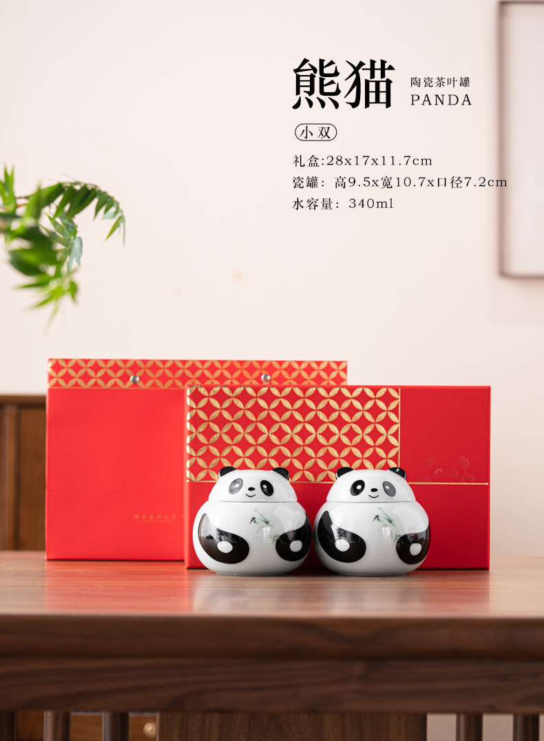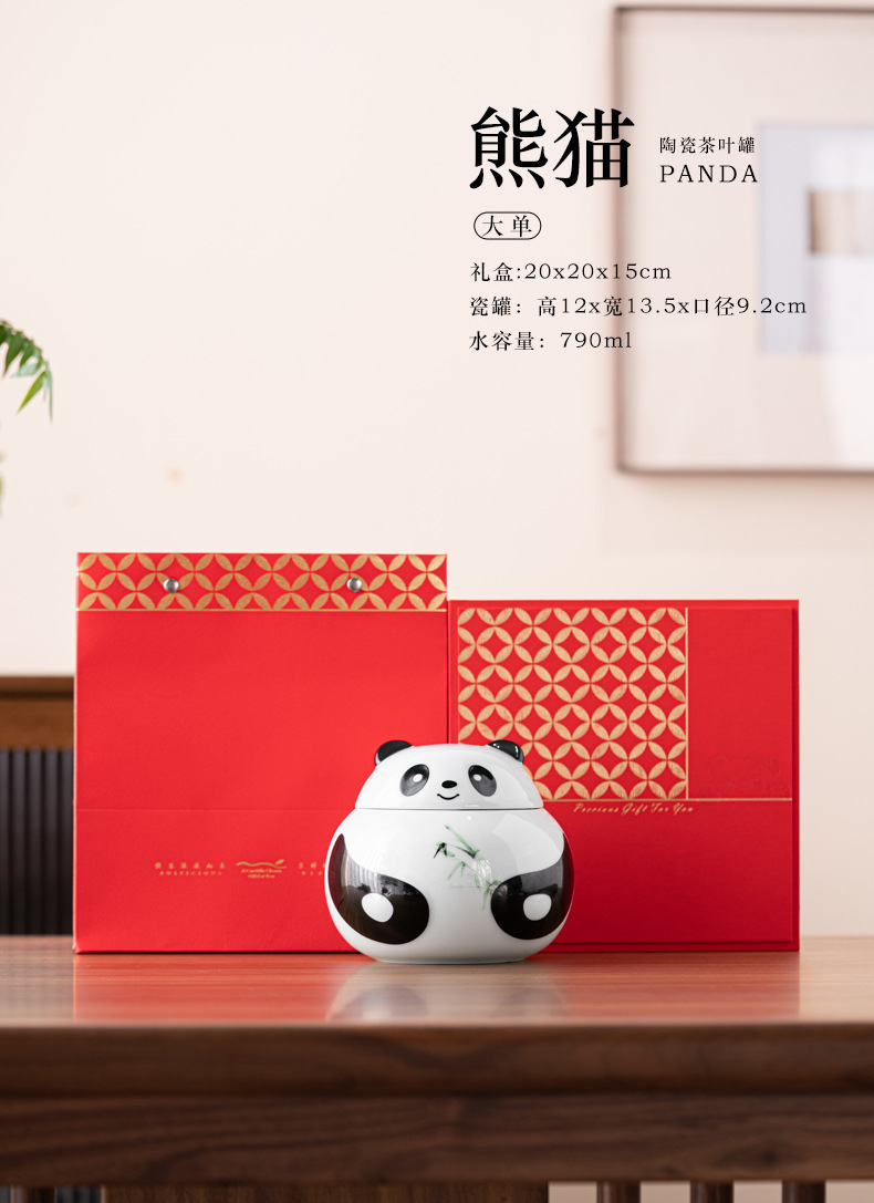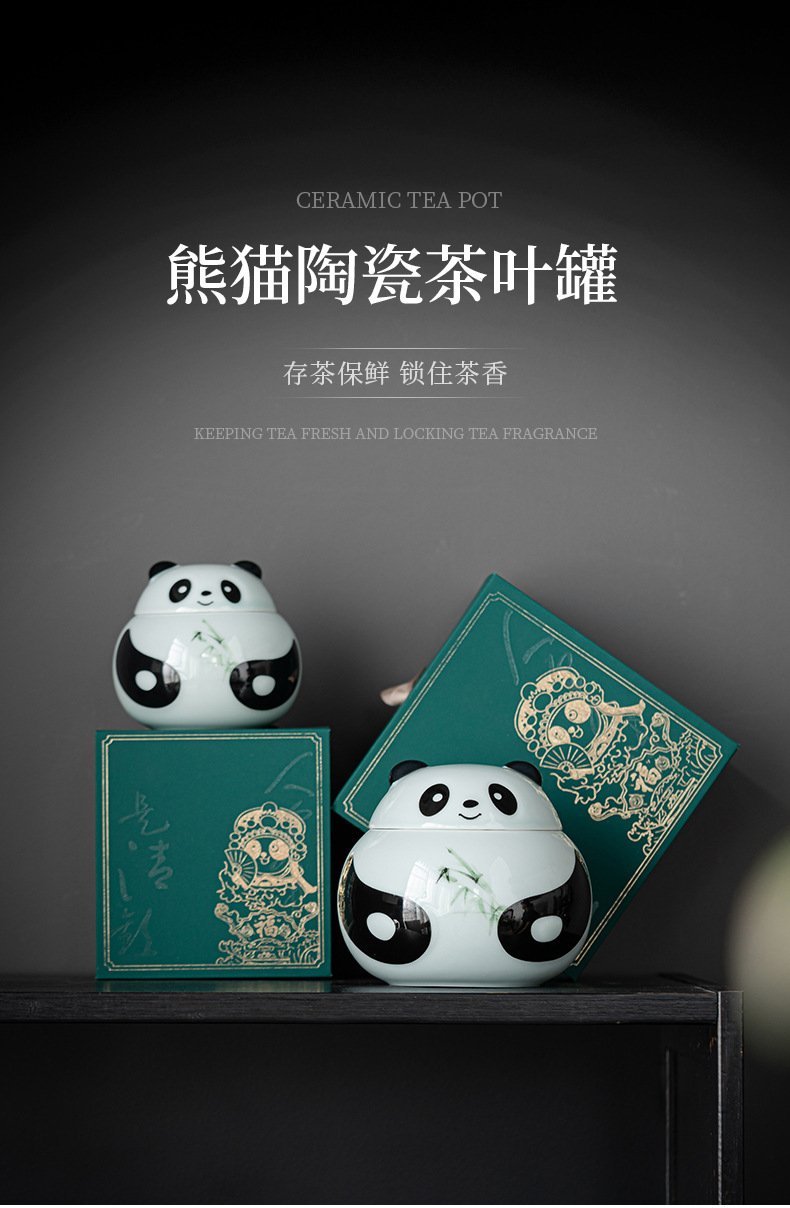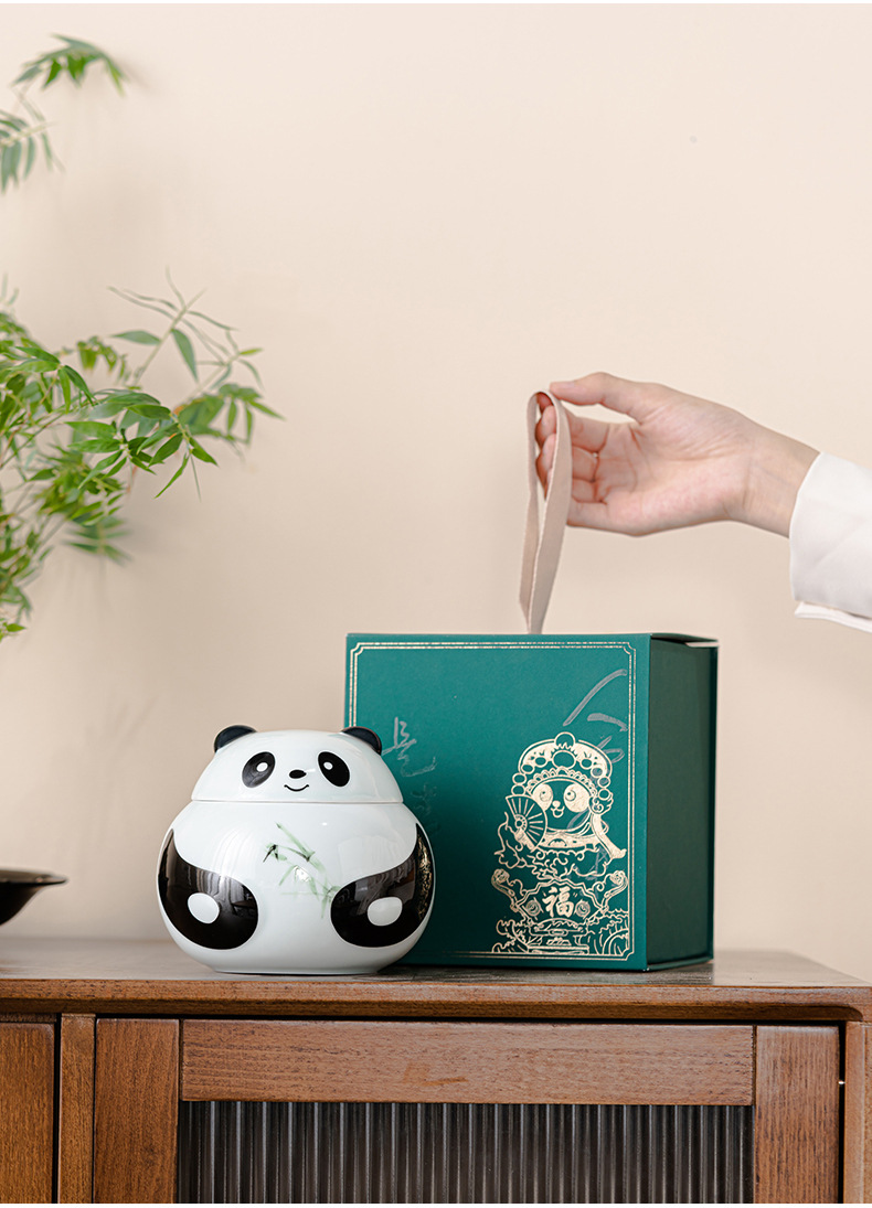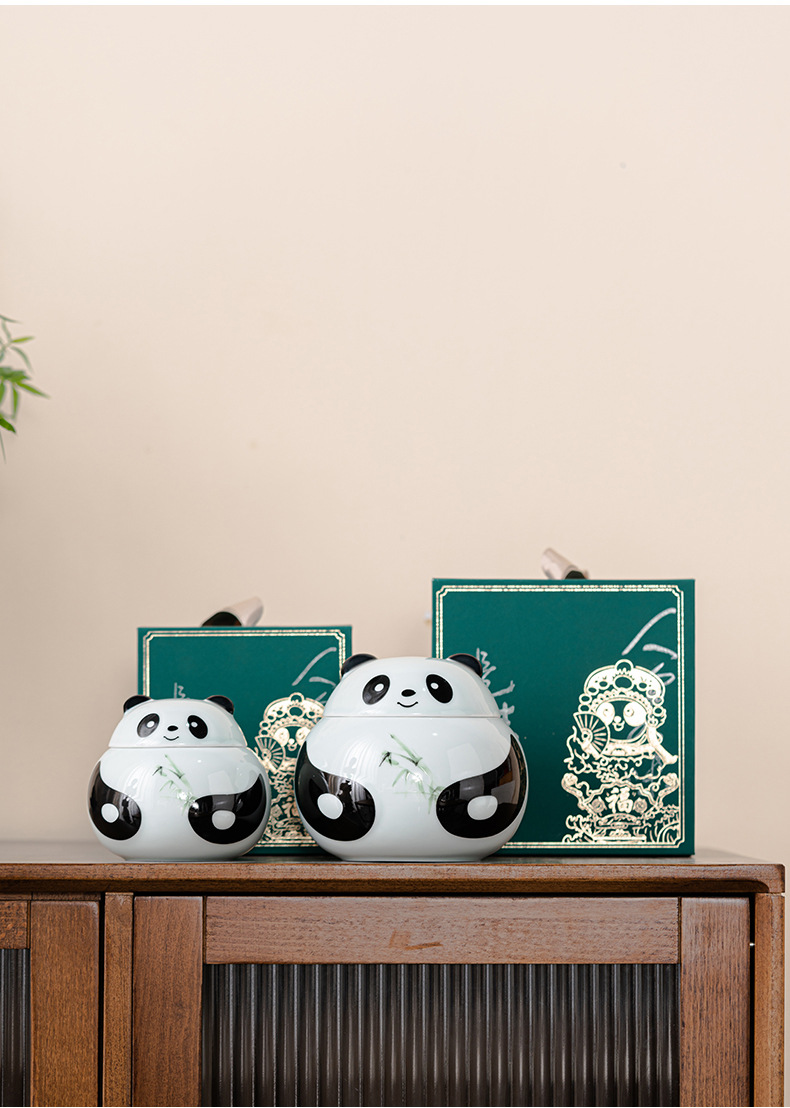 陶瓷熊猫罐茶叶罐摆件家居礼品糖果密封罐