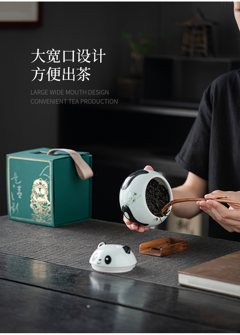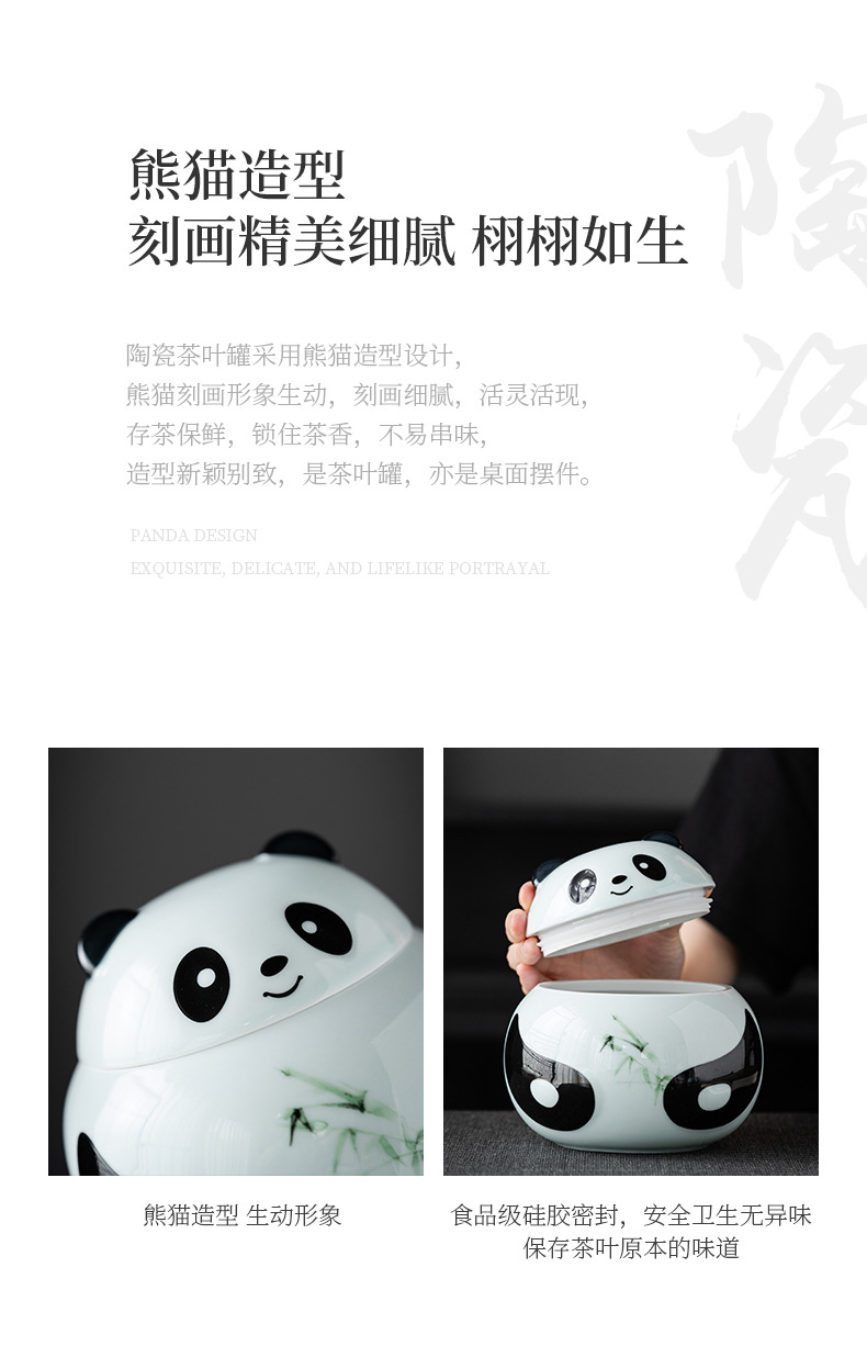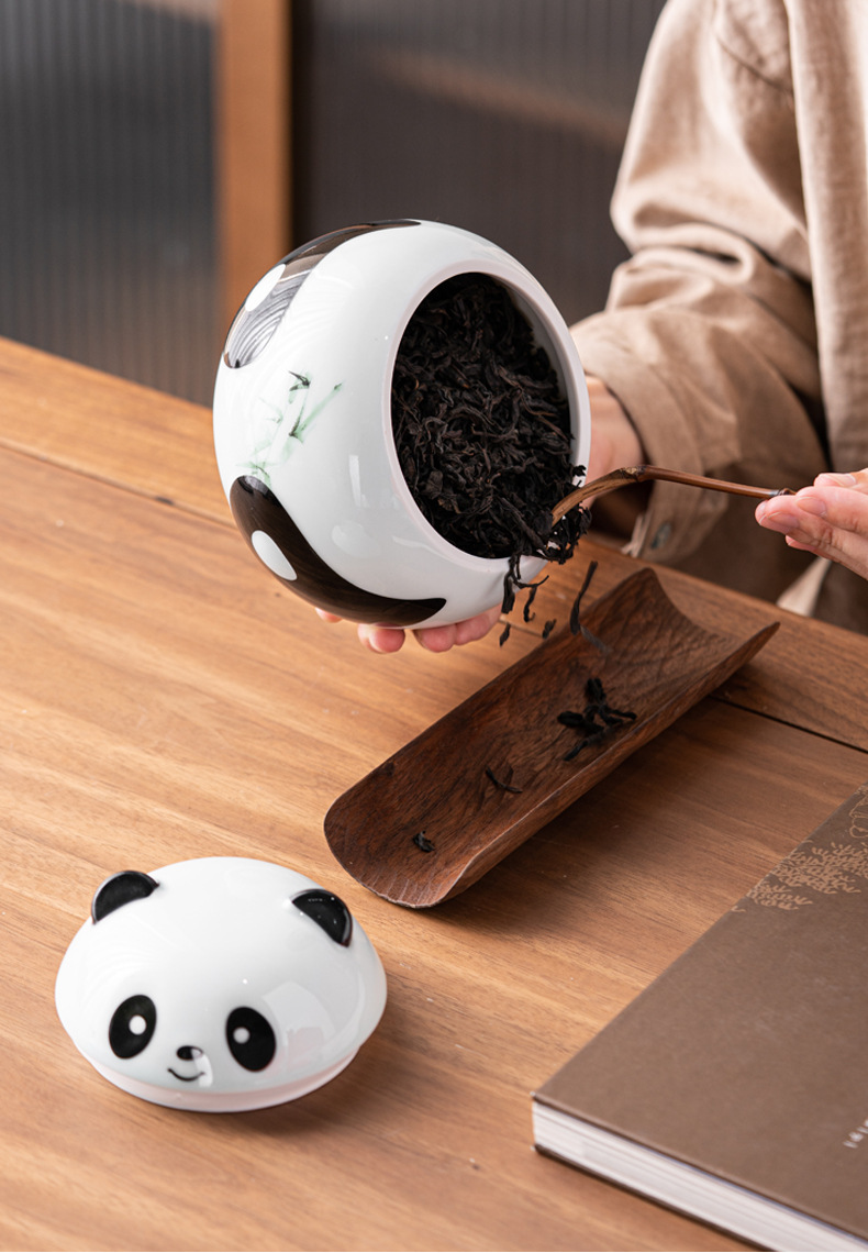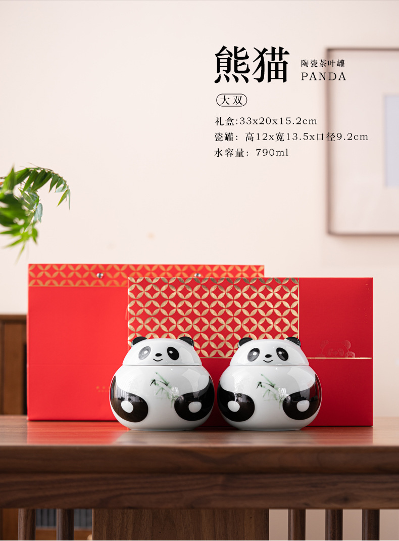 陶瓷熊猫罐茶叶罐摆件家居礼品糖果密封罐