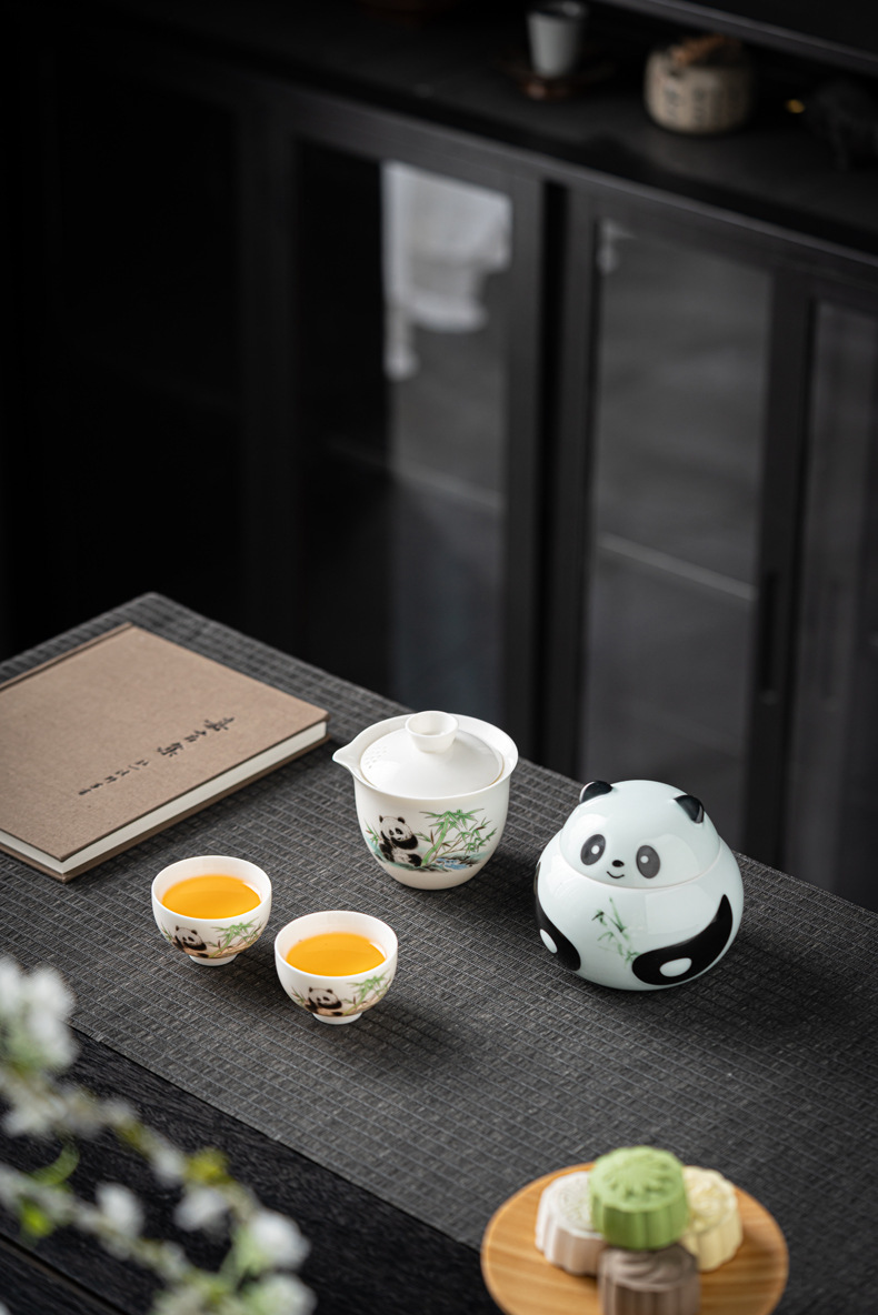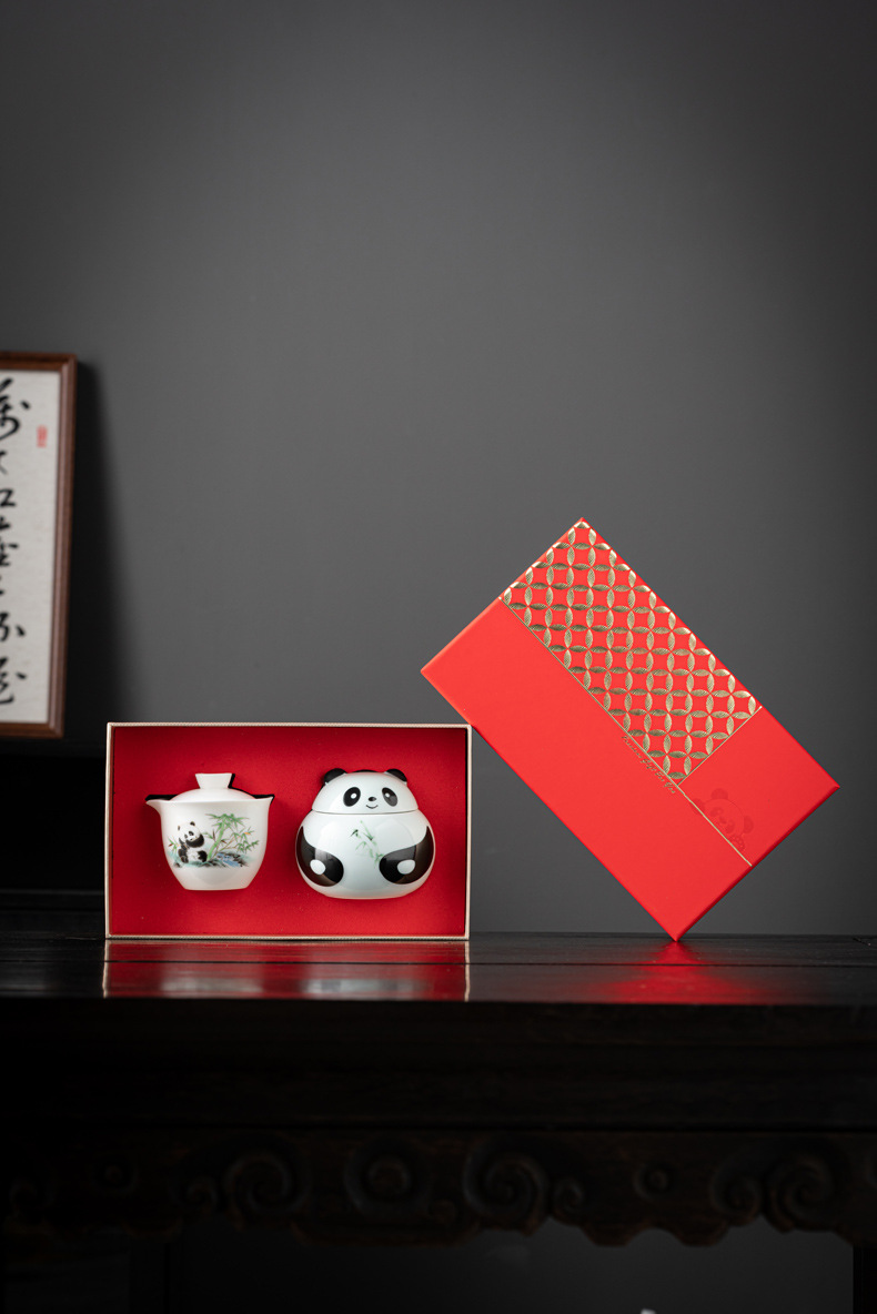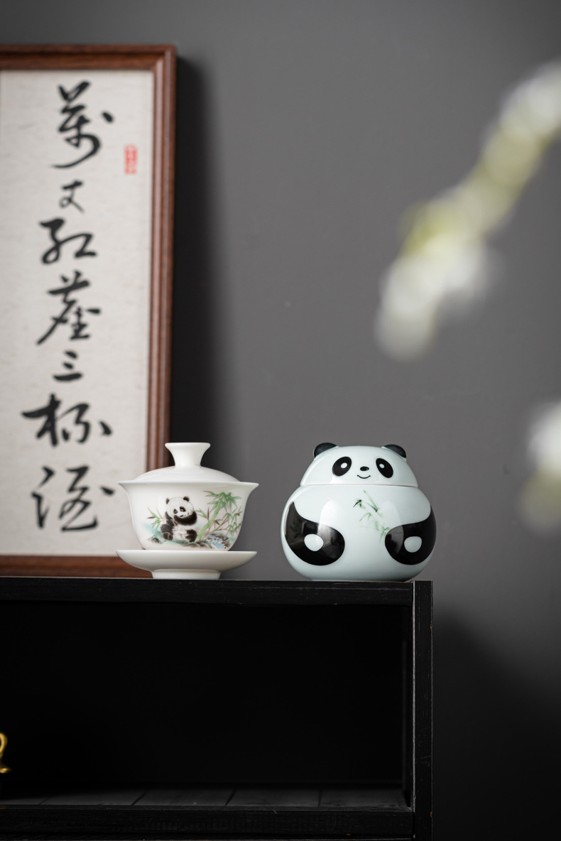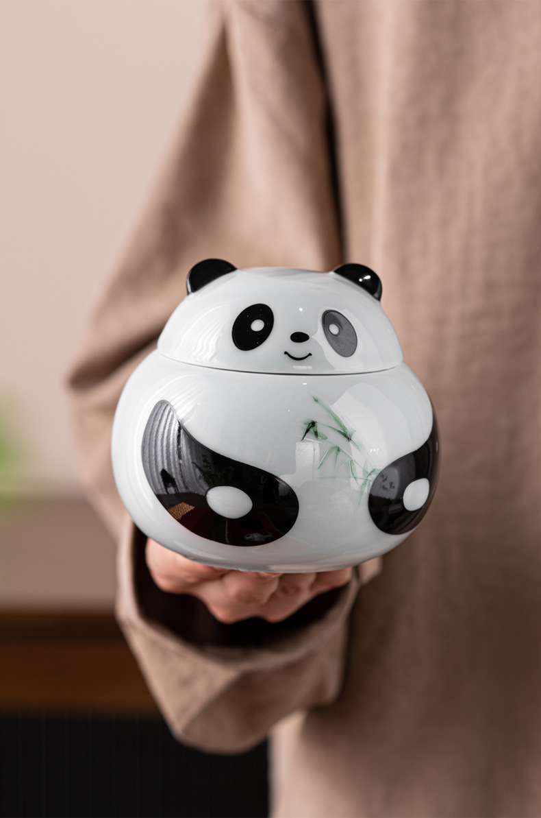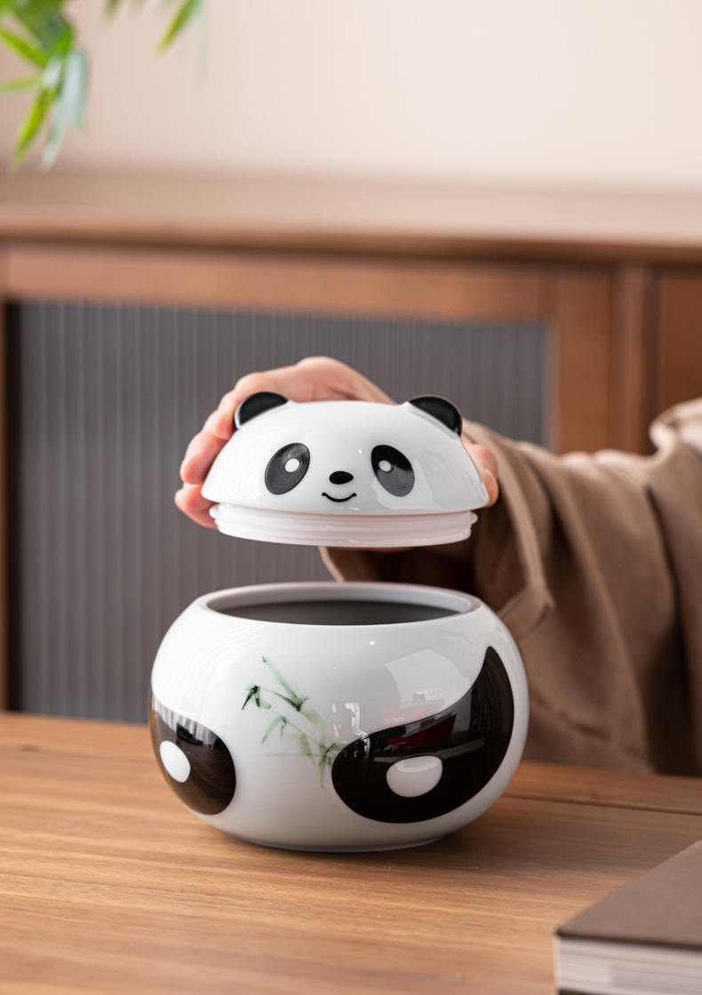 陶瓷熊猫罐茶叶罐摆件家居礼品糖果密封罐