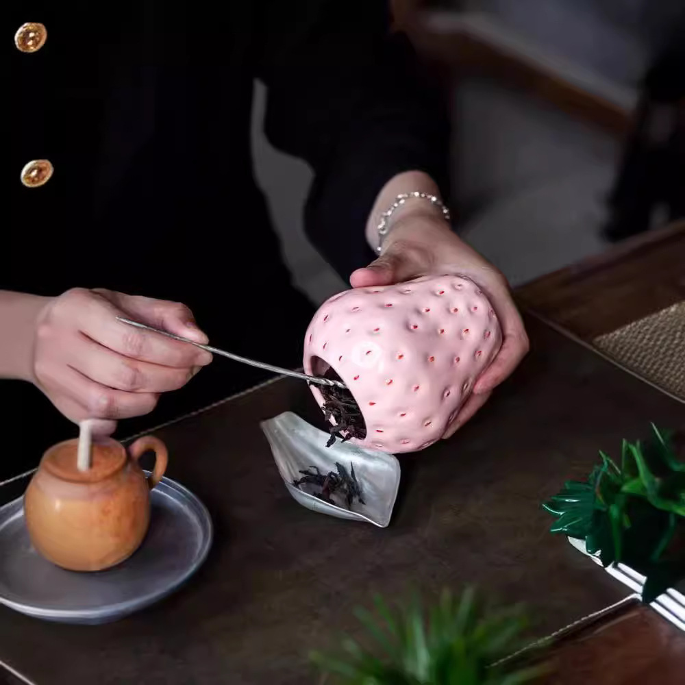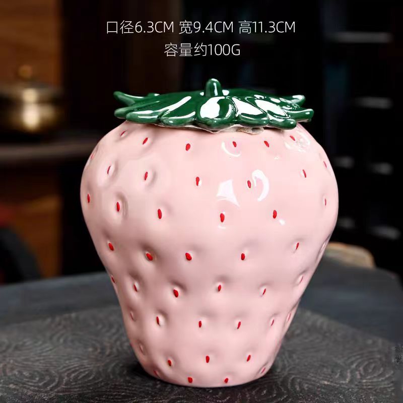 草莓陶瓷茶叶罐密封存储物灌家用防潮茶盒茶道