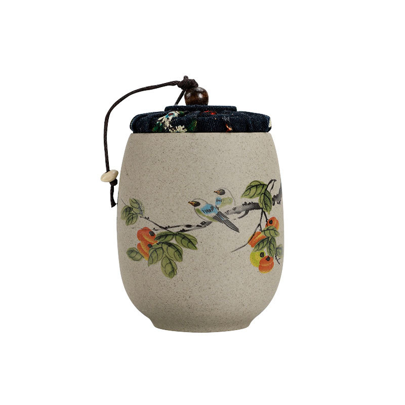 粗陶梅兰竹菊迷你小号便携陶瓷茶叶罐密封茶罐空罐随身储存罐