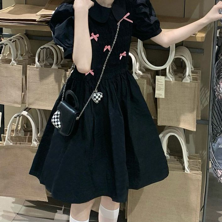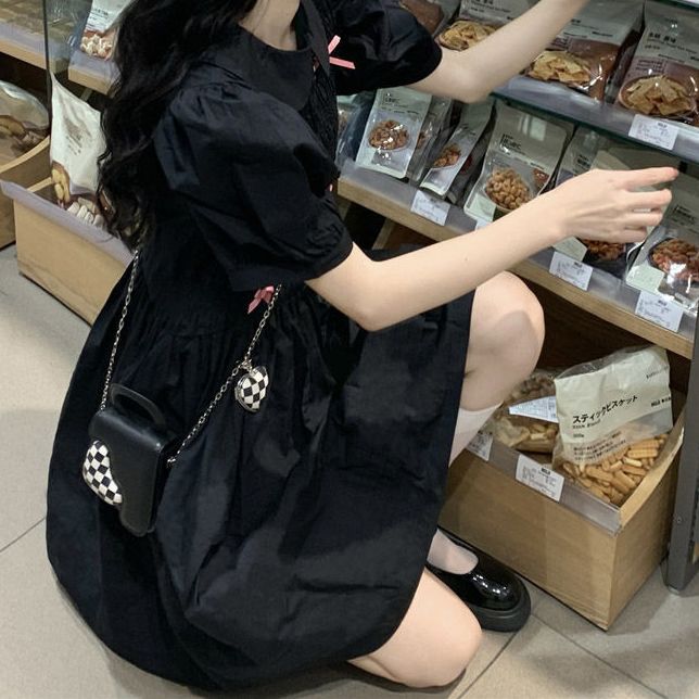 polo领连衣裙女夏季新款学院风收腰显瘦字母短袖A字裙子