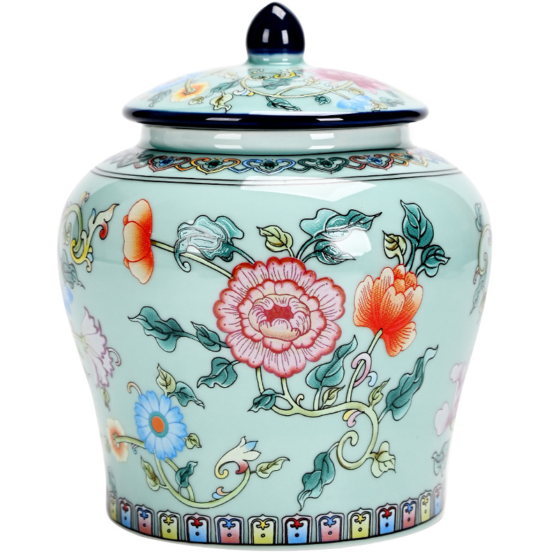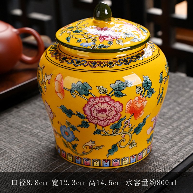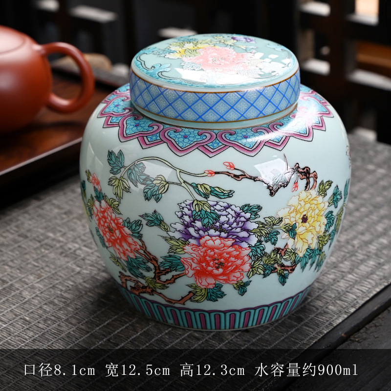 将军罐中号陶瓷茶叶罐防潮密封罐新中式绿茶家用储物罐