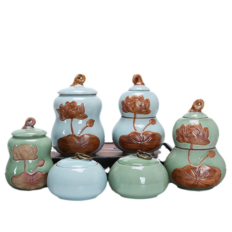 葫芦茶叶罐密封防潮陶瓷罐家用茶叶罐大小号