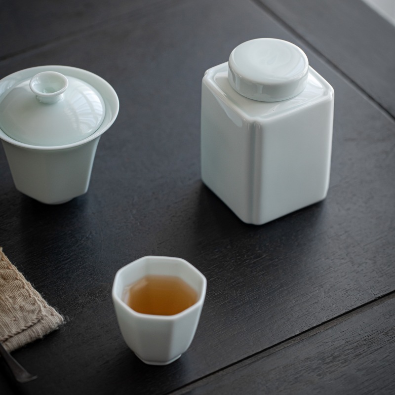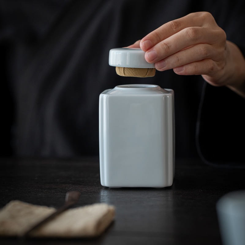 陶瓷四方茶叶罐密封罐简约储物罐防潮收纳罐家用存茶罐茶仓