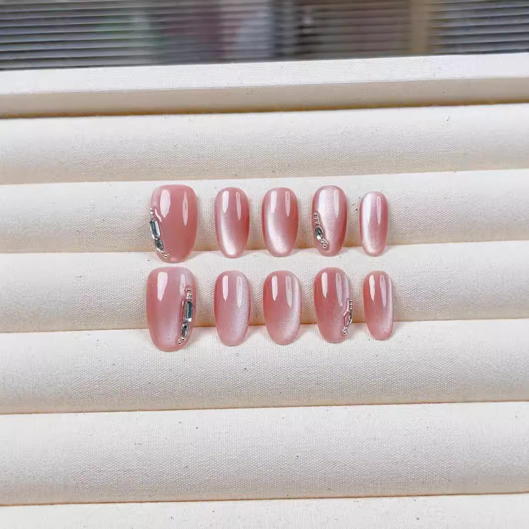 上春山纯手工穿戴甲粉紫色冰透猫眼美甲贴气质简约贴钻可拆卸甲片