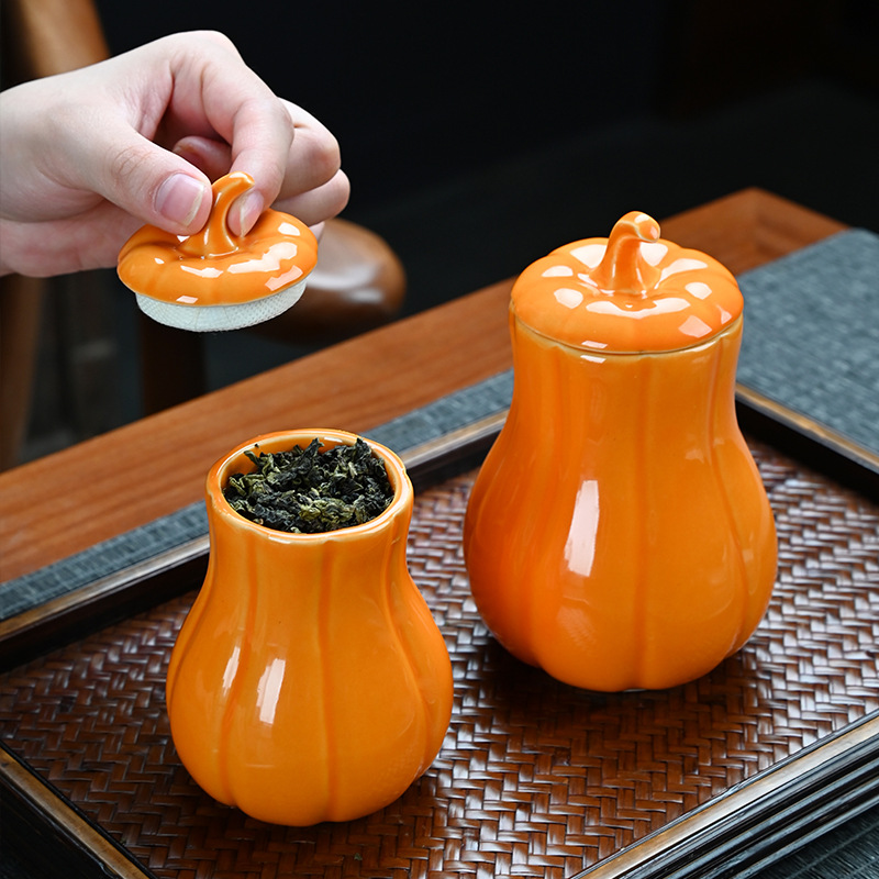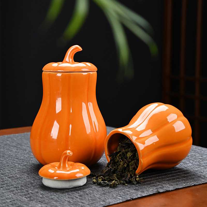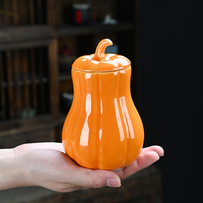 陶瓷茶叶罐小号南瓜糖果罐婚庆大号家用迷你存茶罐