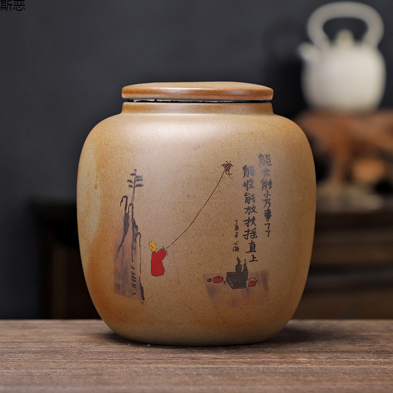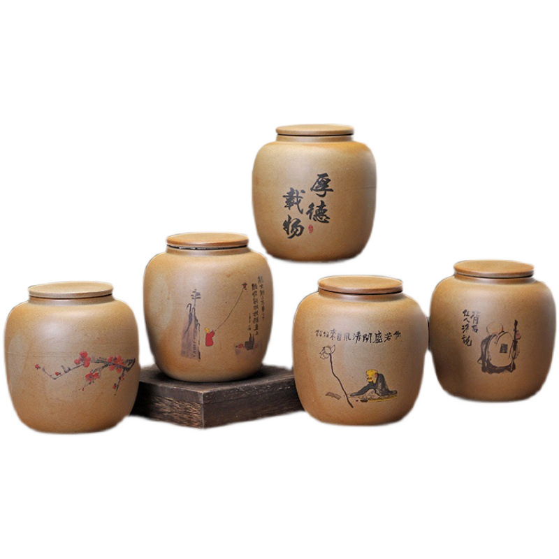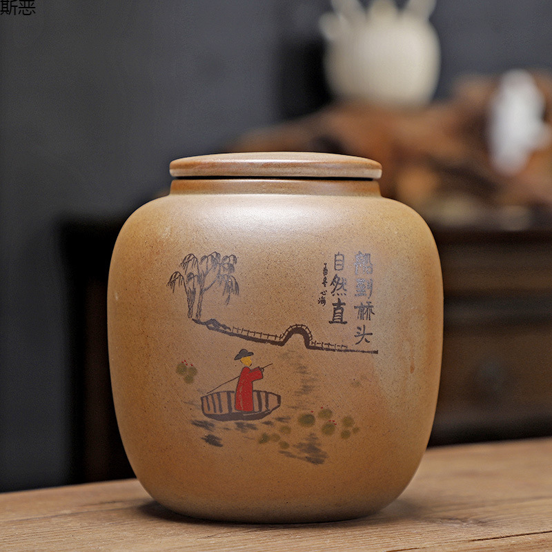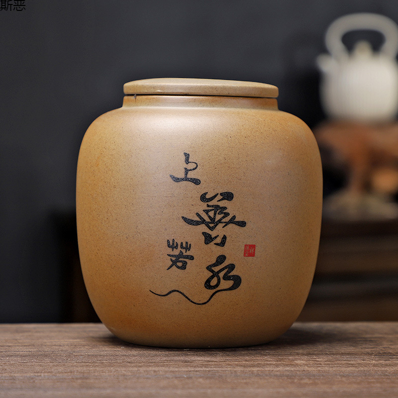 粗陶茶叶罐陶瓷半斤装储存罐密封罐陶罐散茶罐花茶白茶普洱罐紫砂