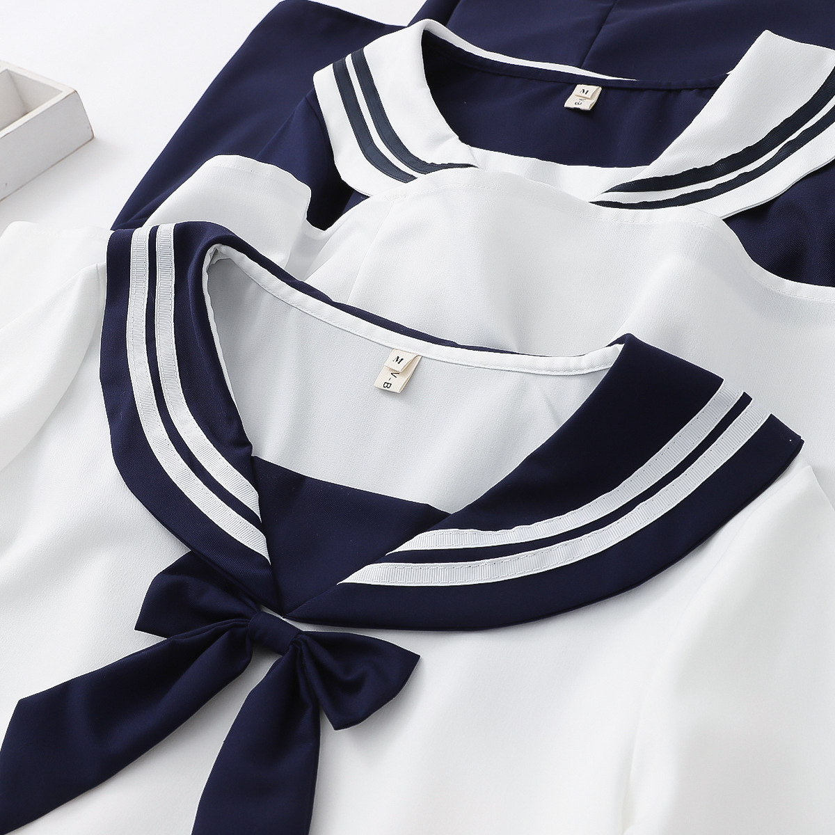 80244海军风少女短袖连衣裙夏季新款学院风学生宽松水手服