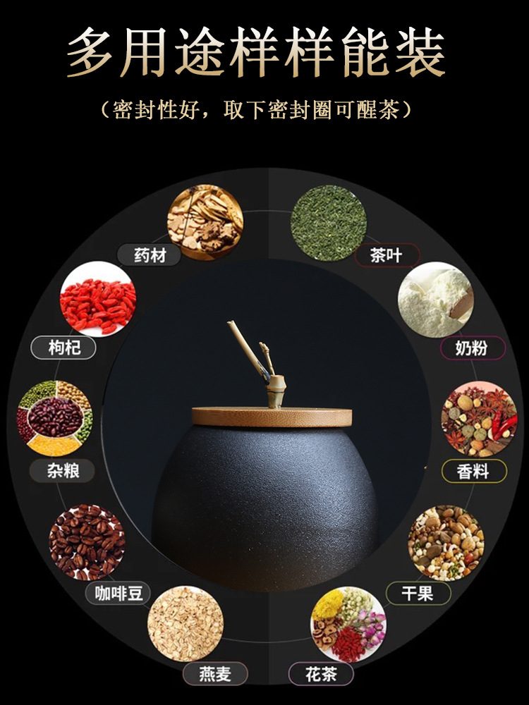 茶叶罐陶瓷密封罐粗陶大小号家用储物罐防潮
