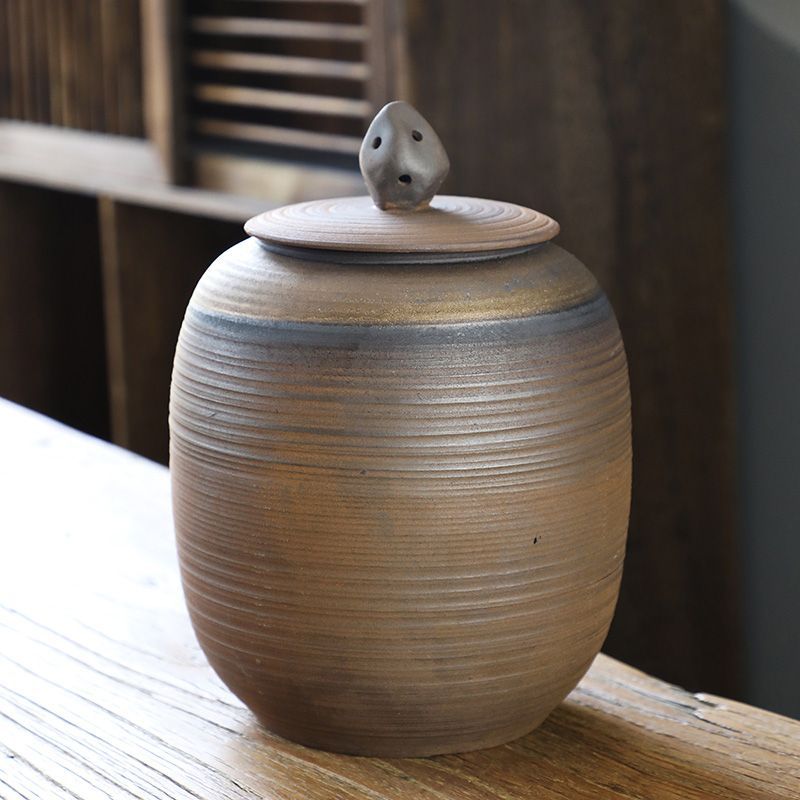 粗陶陶瓷茶叶罐复古锡盖密封小大号半斤装存防潮仓茶叶包装罐