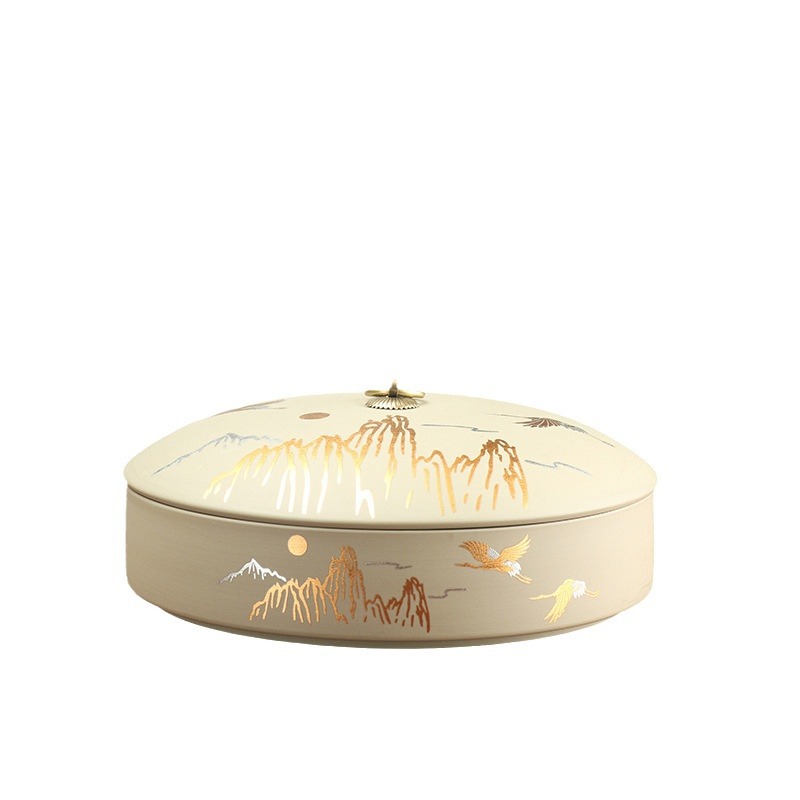 粗陶一饼罐(一盖一底)-祥鹤献瑞