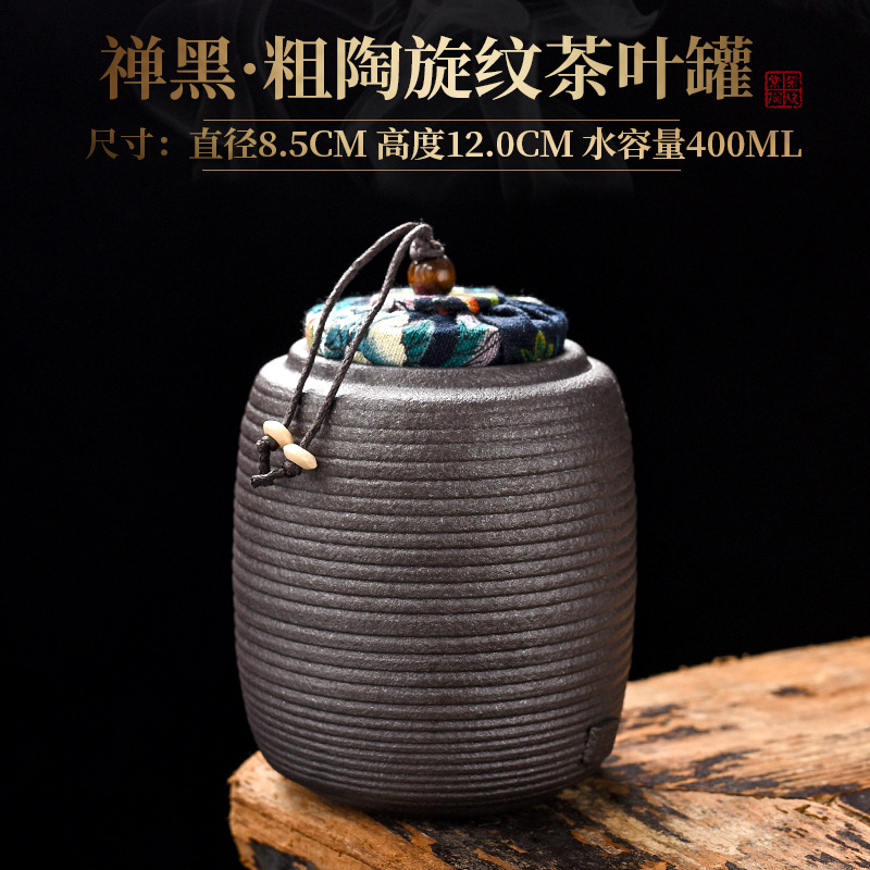 禅黑·粗陶旋纹茶叶罐