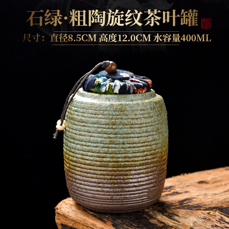 石绿·粗陶旋纹茶叶罐