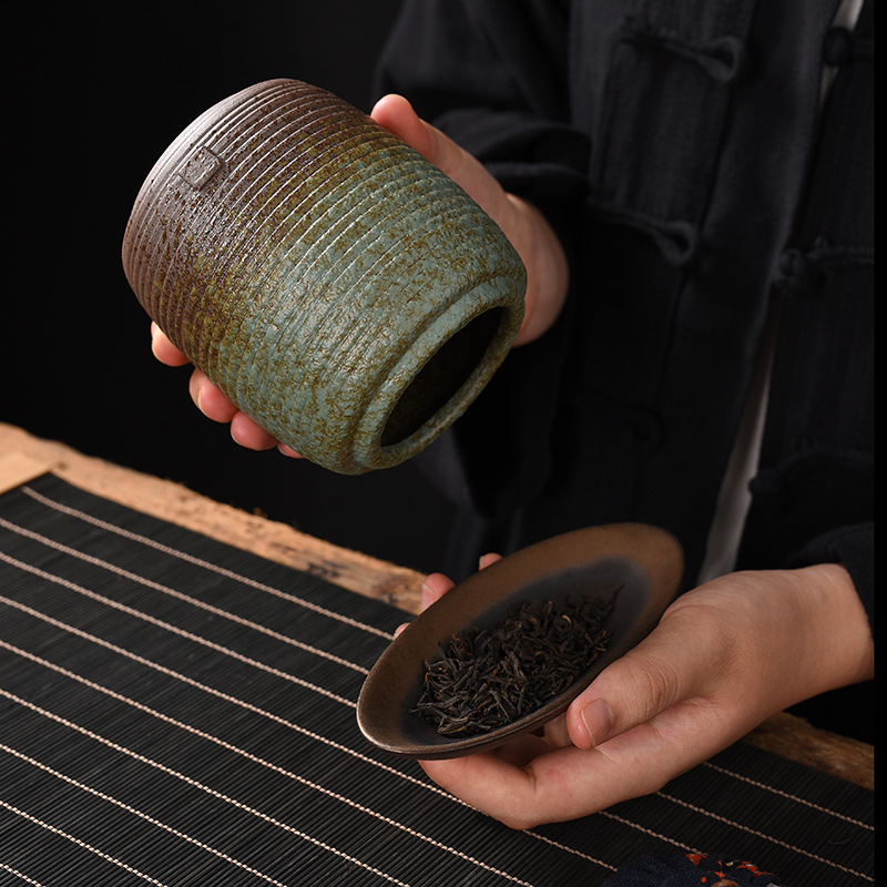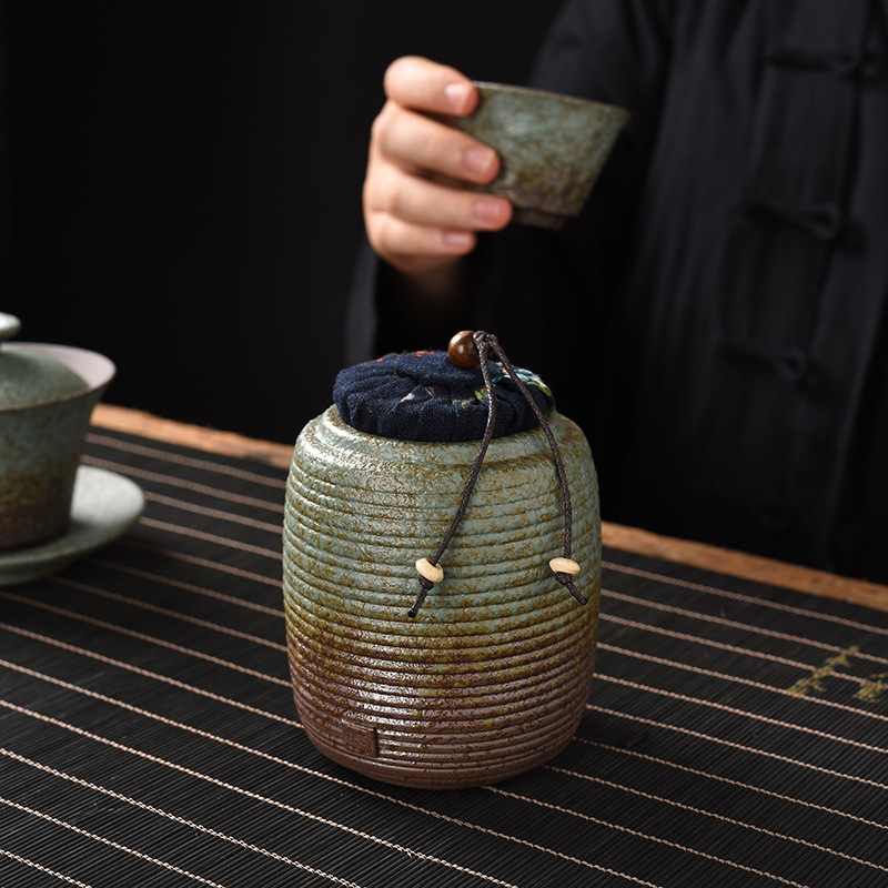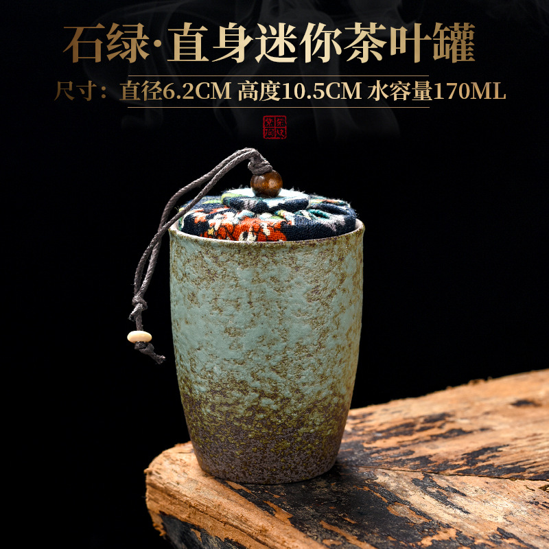 复古石绿粗陶茶叶罐家用小号密封罐创意日式陶瓷茶叶存储罐