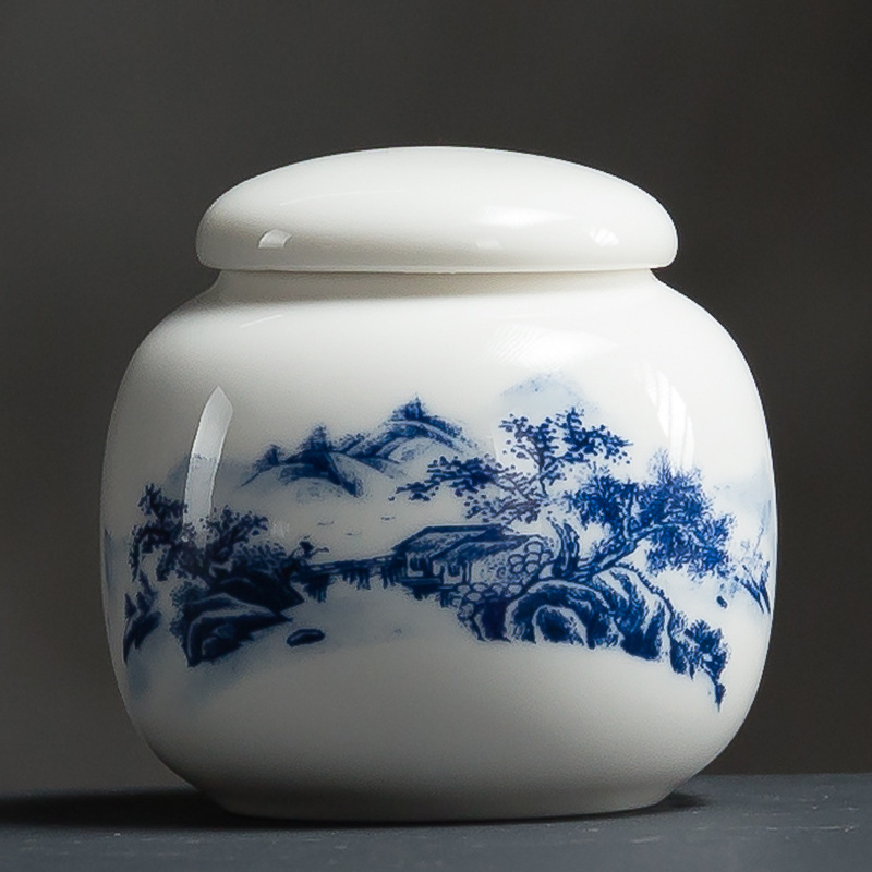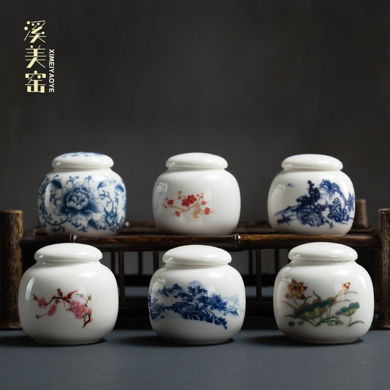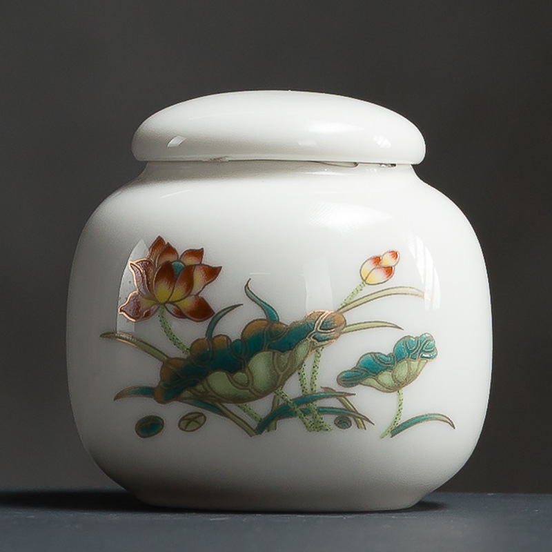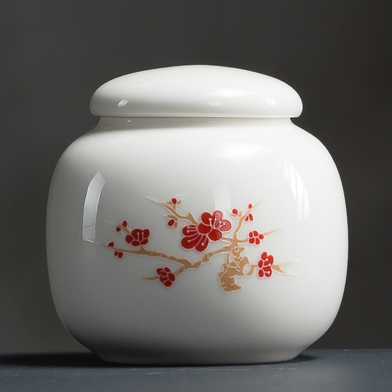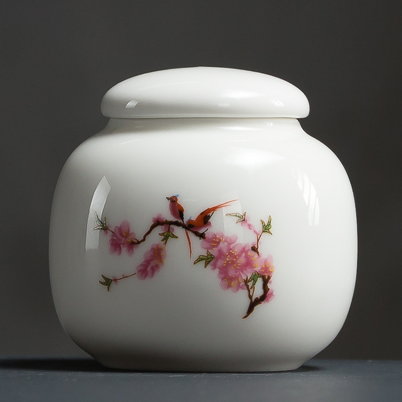 羊脂玉白瓷陶瓷茶叶罐迷你小号密封罐储物罐