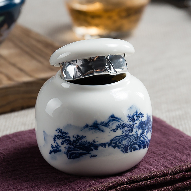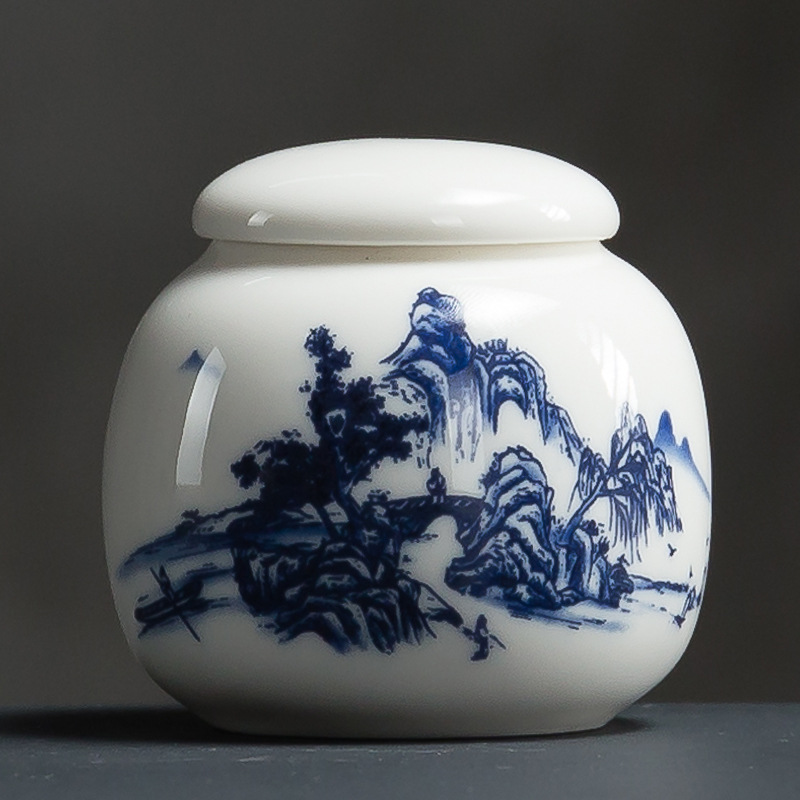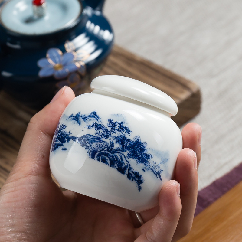 青花瓷茶叶罐陶瓷密封罐中药罐香粉瓶陶瓷罐储物罐