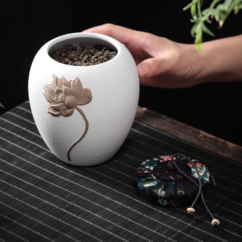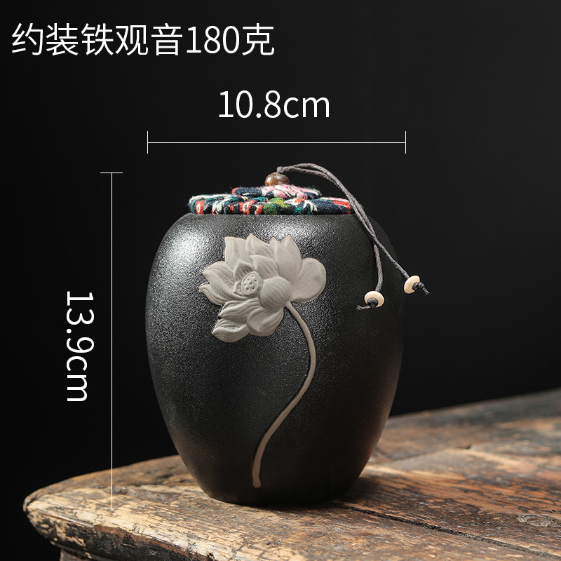 茶叶罐新中式陶瓷大号密封罐家用储茶罐防潮居家黑陶功夫茶具配件