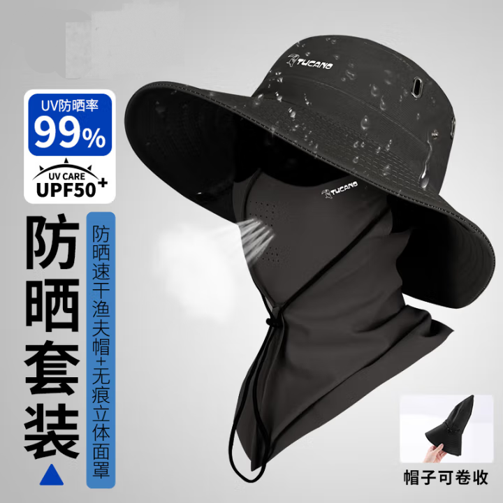 防晒帽子男夏季户外骑行防紫外线透气遮阳渔夫帽太阳帽