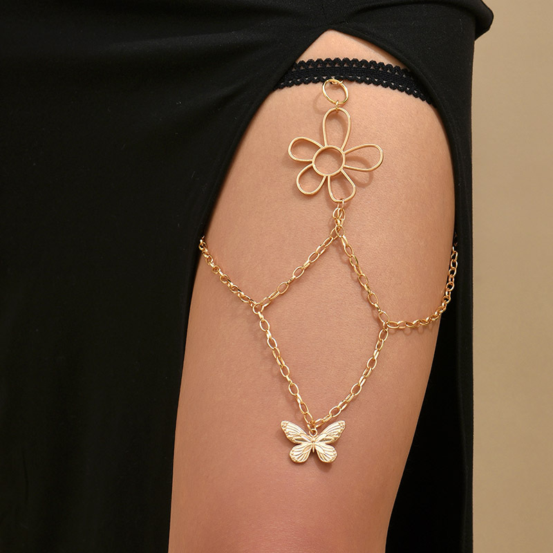 简约度假沙滩弹力花朵蝴蝶腿链女士 创意个性链条身体链饰品