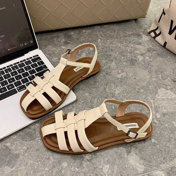罗马凉鞋女新款夏季镂空编织平底包头猪笼鞋软底沙滩凉鞋